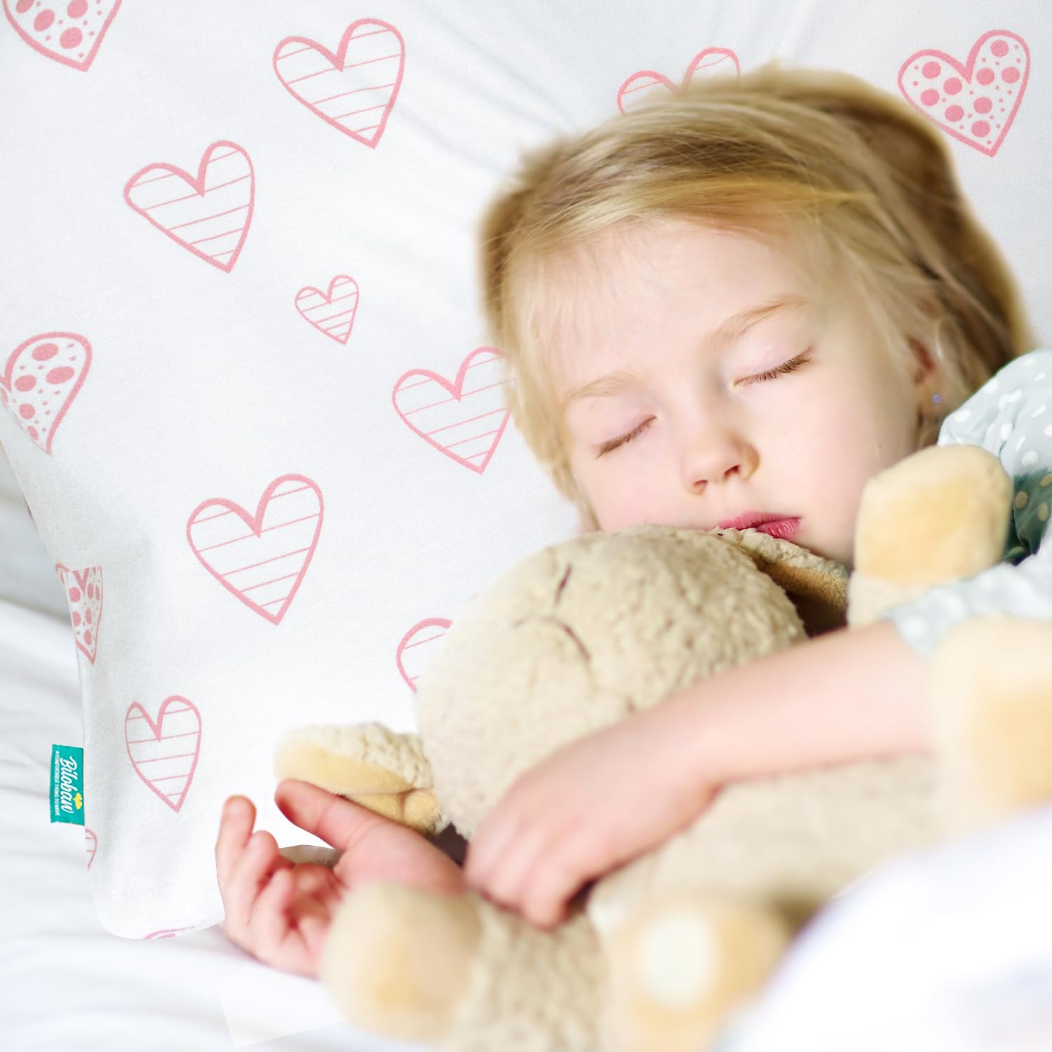 - Q: What patterns are available for these pillowcases? A: The toddler pillowcases come in a lovely pink heart and stripe pattern, making them visually appealing for children.