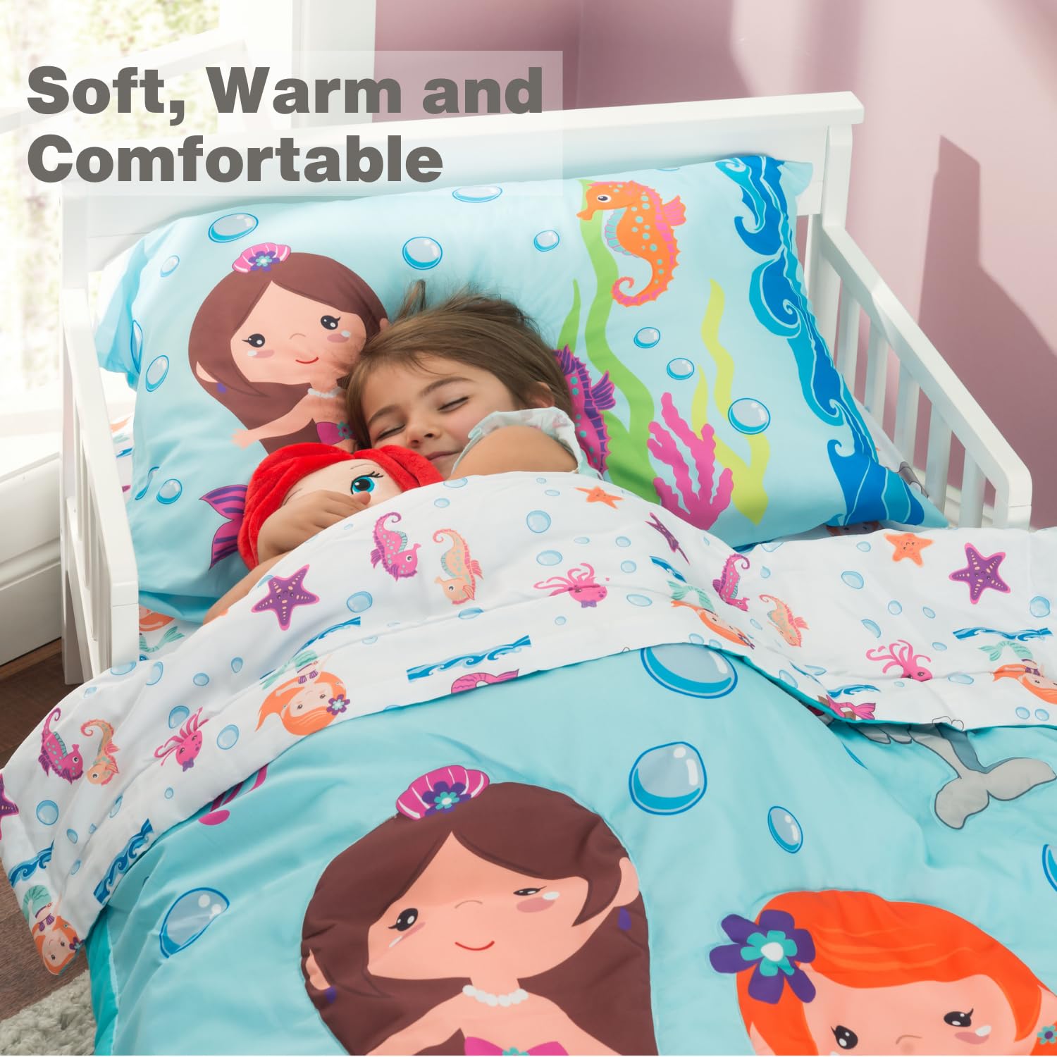 - Q: What designs are available in this toddler bedding set? A: The Everyday Kids toddler bedding set features a colorful Undersea Mermaids Adventure design, perfect for children who love mermaids and sea creatures.