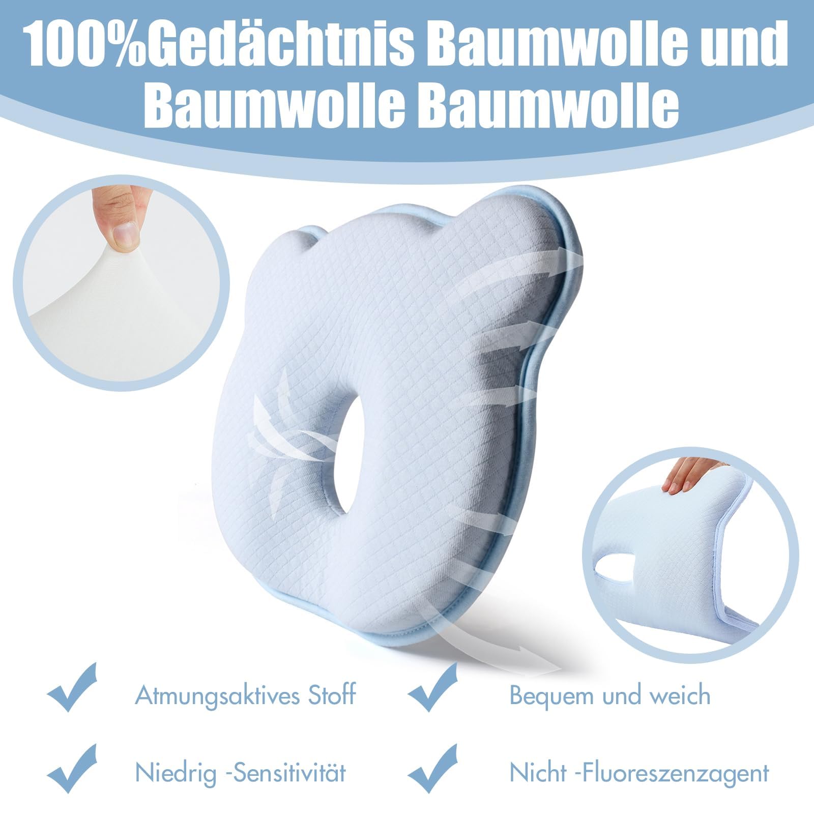 - Q: How does the pillow help prevent flat head syndrome? A: This pillow is specifically shaped to provide gentle support for your baby's head, helping to prevent flat head syndrome by promoting proper head positioning.