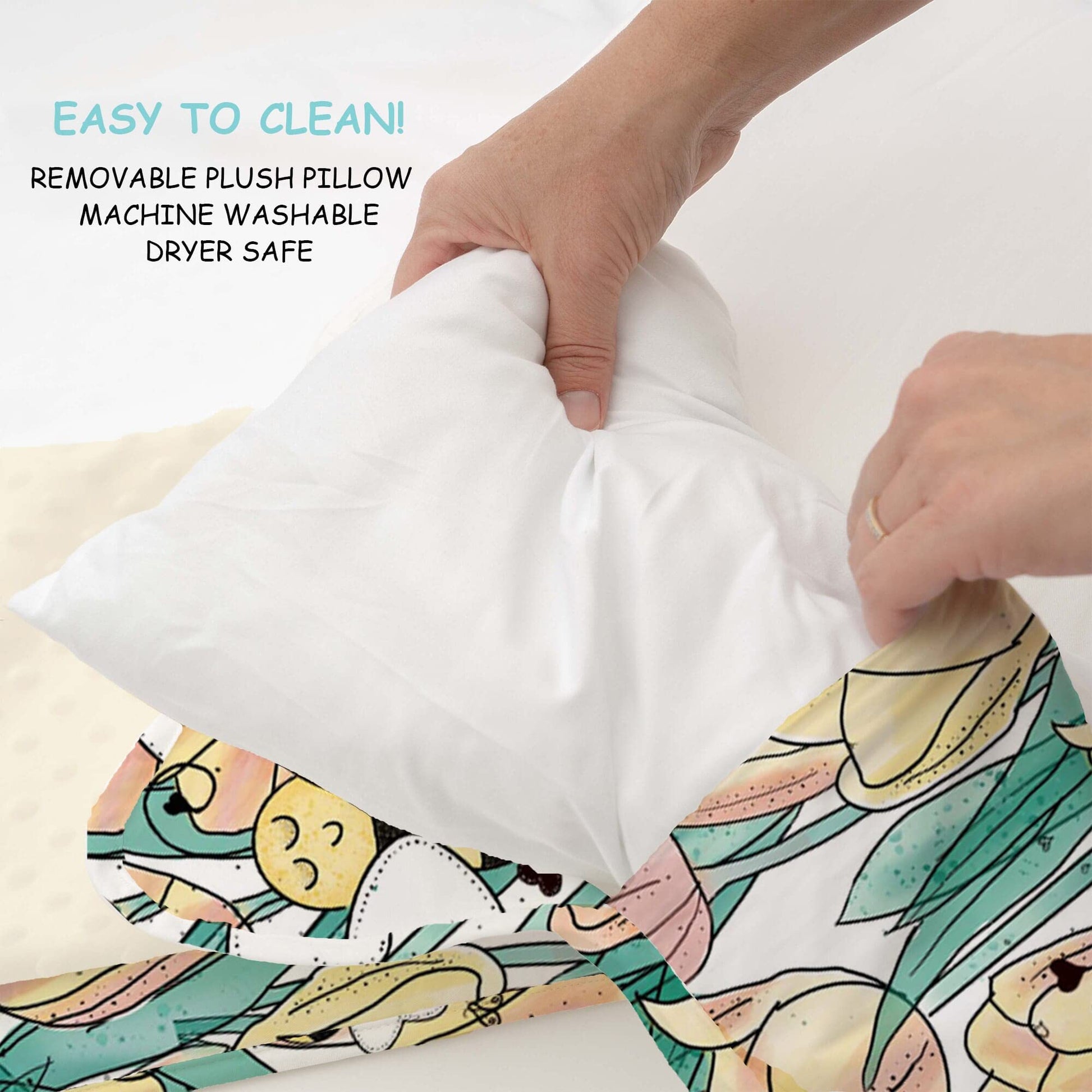 - Q: What care instructions should I follow for the nap mat? A: For care, the nap mat can be machine washed on cold and tumble dried on low. Remember to remove the pillow insert before washing to maintain its quality.