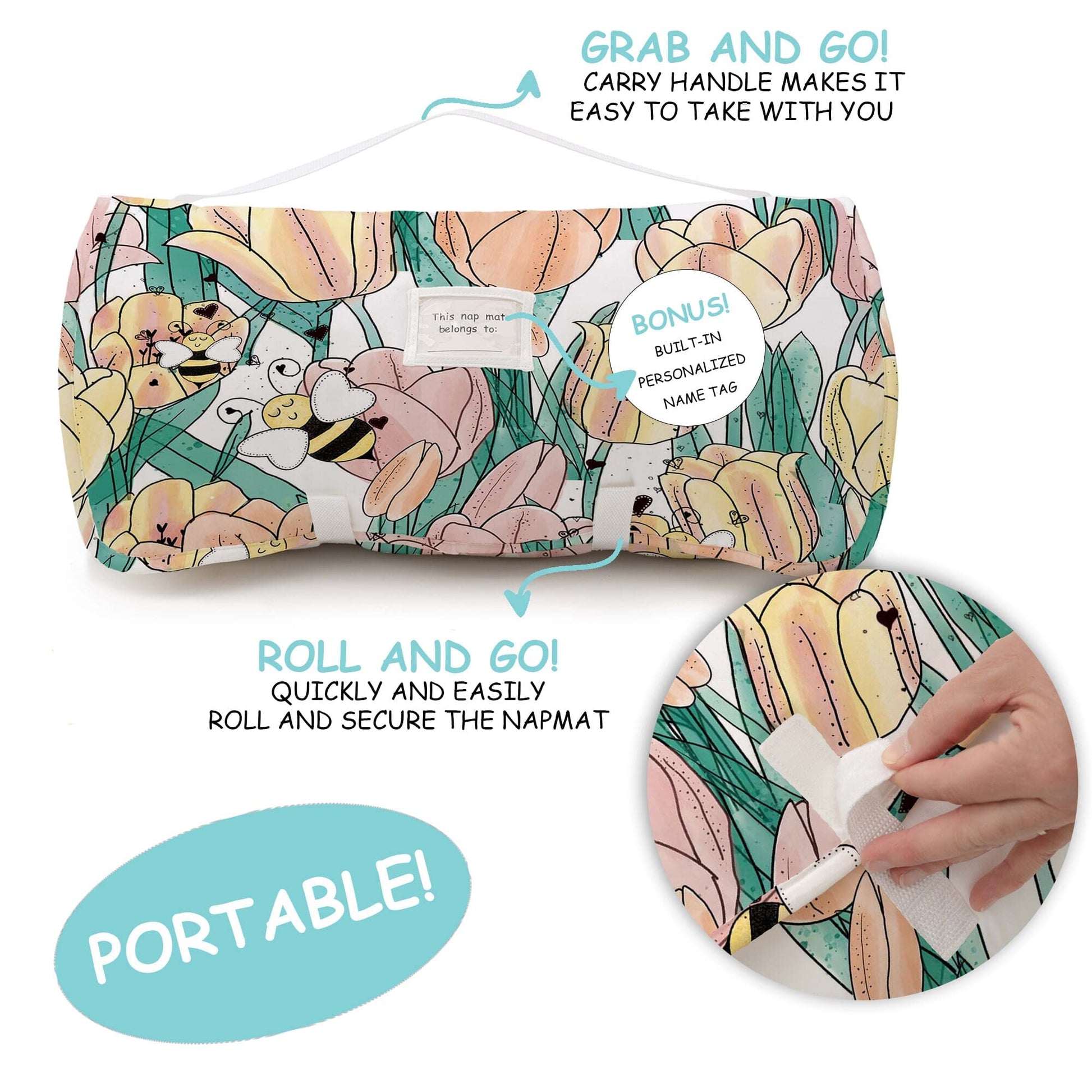 - Q: Is this nap mat suitable for travel? A: Yes, the JumpOff Jo toddler nap mat is designed for travel with a roll-up design and a secure hook and loop closure, making it easy to carry. It also features handles and name tags, ideal for daycare and sleepovers.