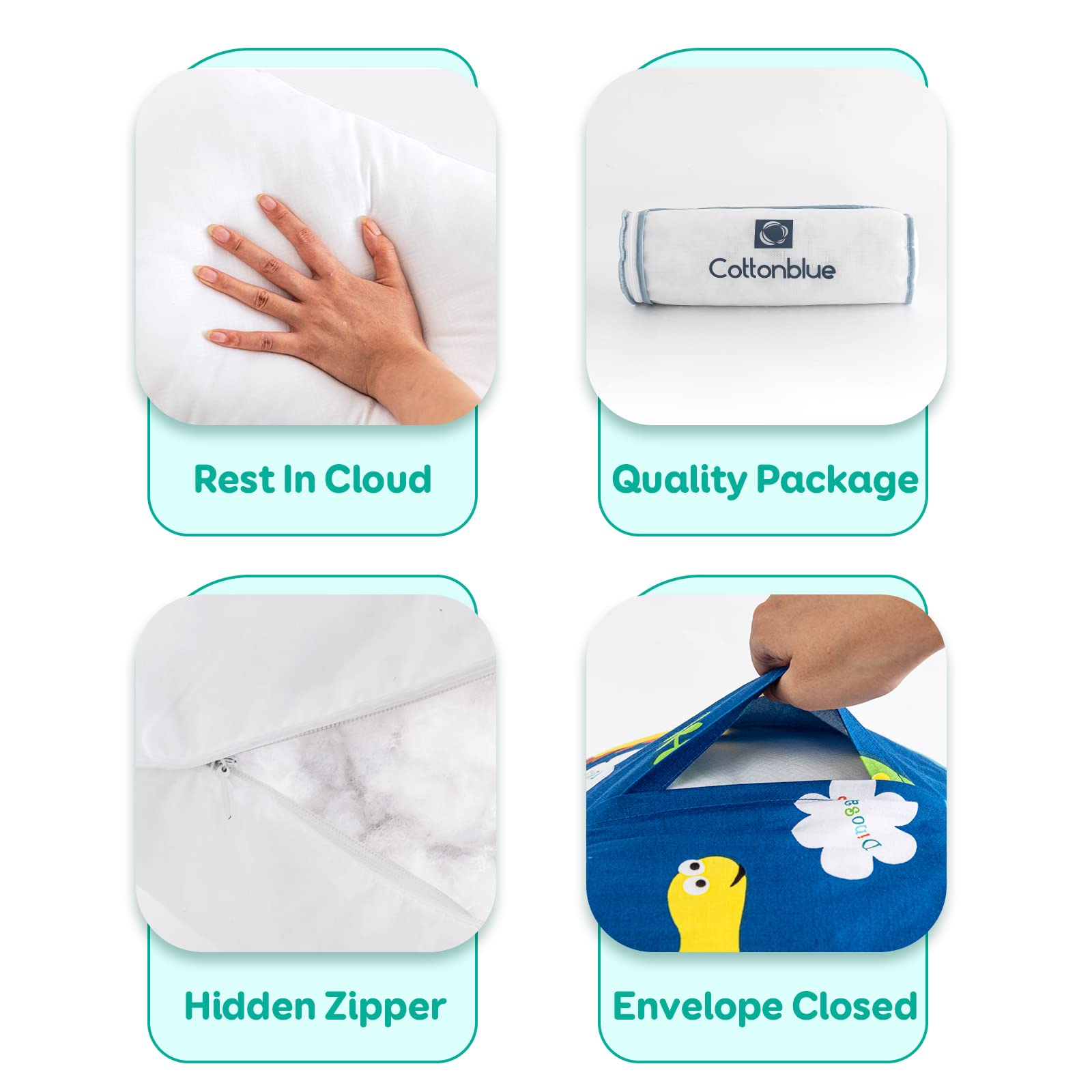 - Q: What are the dimensions of the Cottonblue Toddler Pillow? A: The Cottonblue Toddler Pillow measures 14 inches by 19 inches, making it ideal for toddlers.