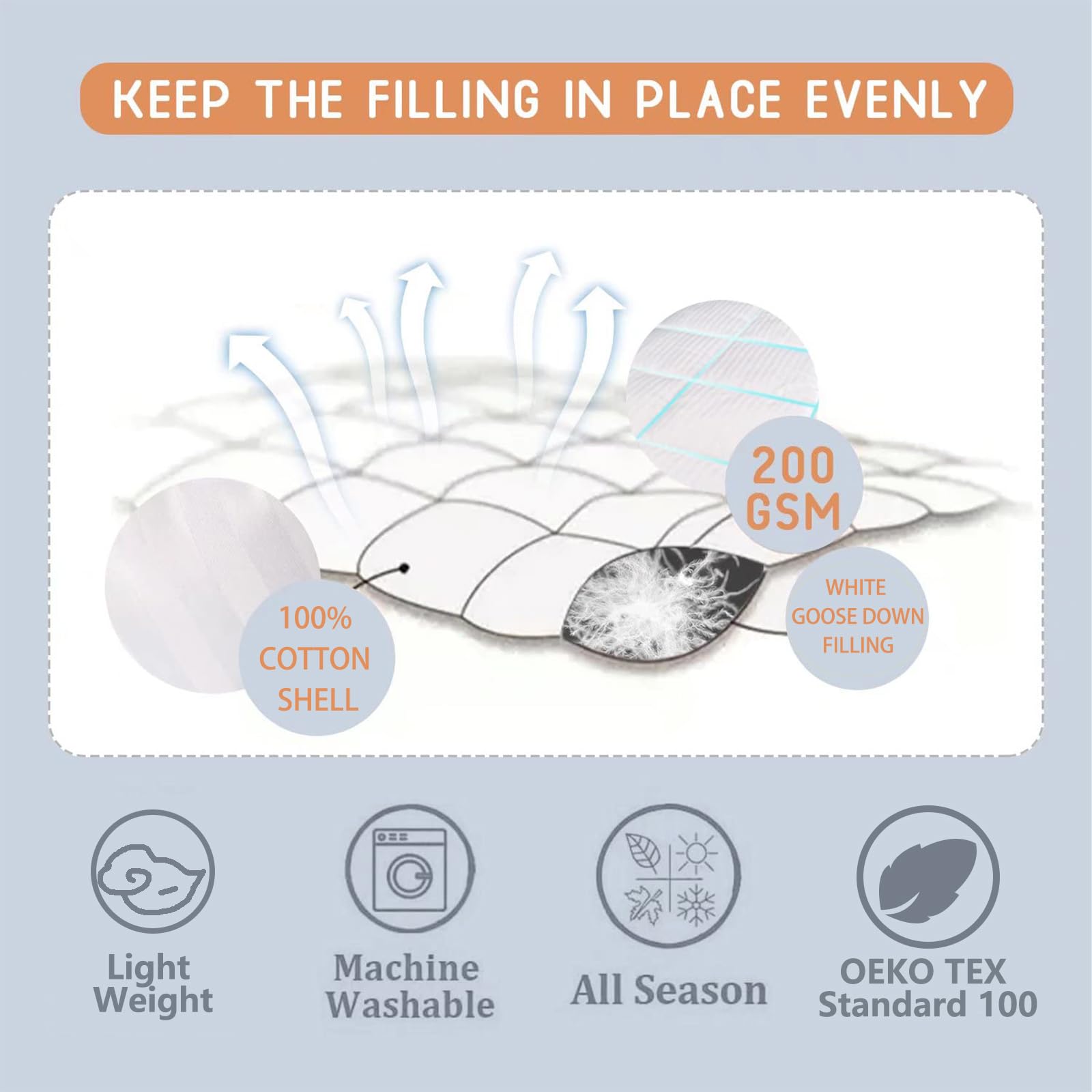- Q: Does the comforter have any odor? A: The comforter is designed to be static-free and odorless, ensuring a pleasant sleeping experience.