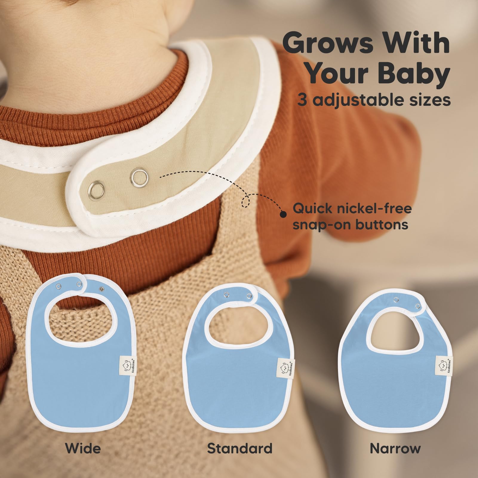 - Q: How do the adjustable snaps work? A: The bibs feature two sets of nickel-free snaps, allowing you to easily adjust the fit according to your baby's neckline.