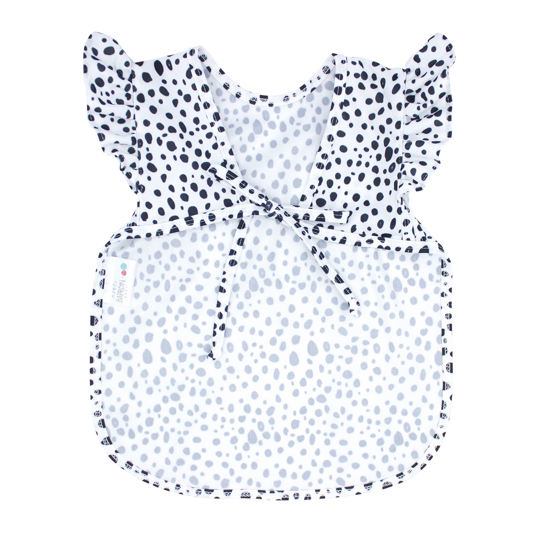 - Q: What is the size range for the BapronBaby Flutter Bapron? A: The BapronBaby Flutter Bapron is designed to fit babies and toddlers from size 6 months to 3 years, making it suitable for various stages of growth.