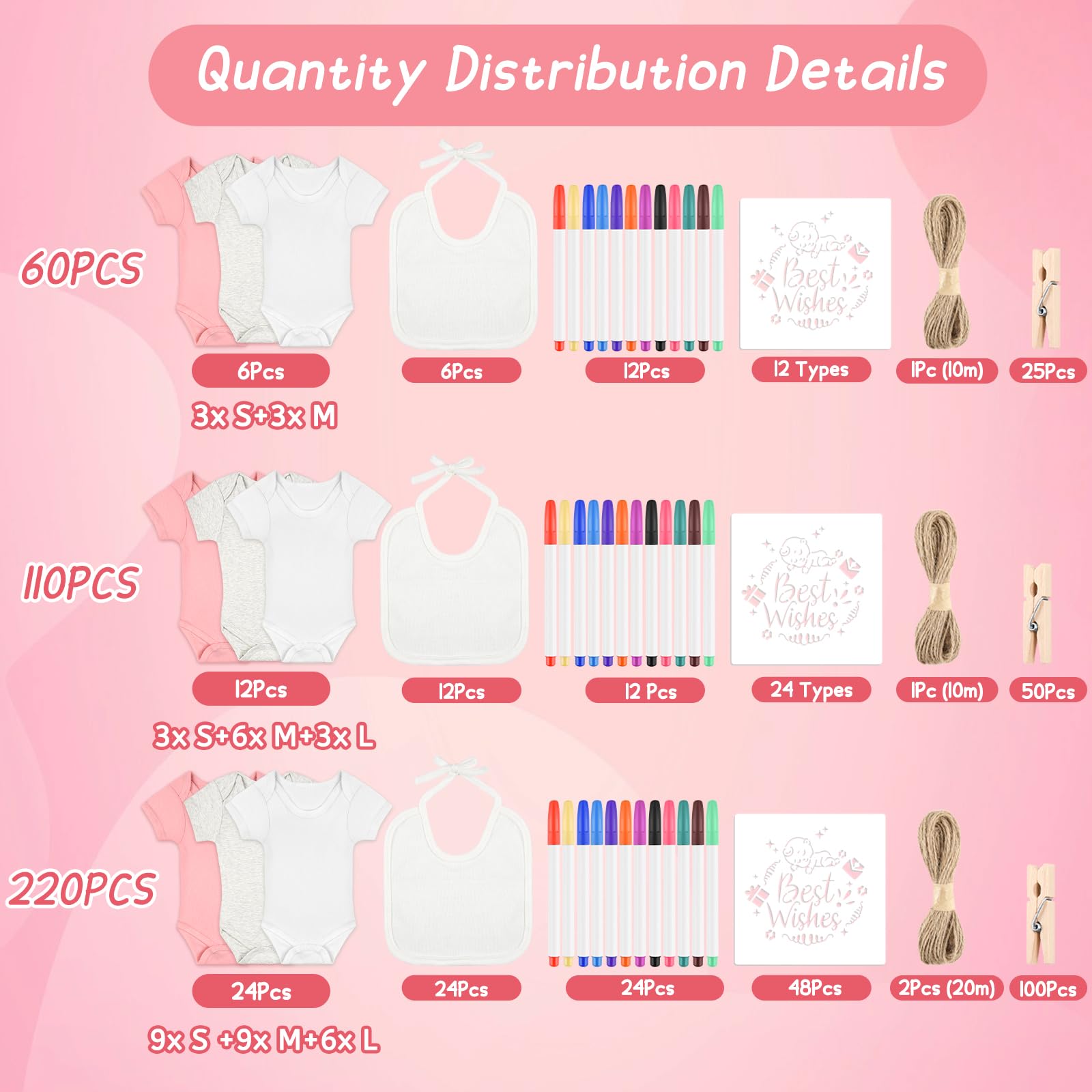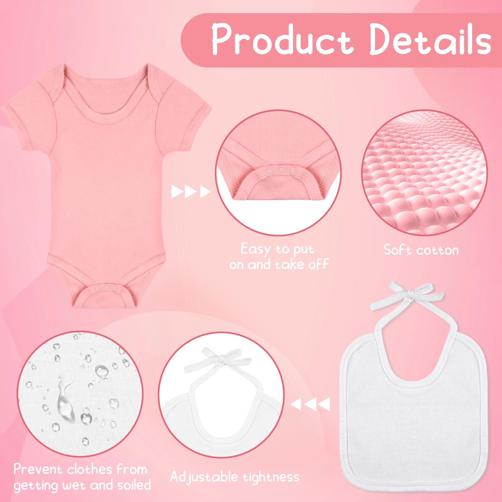 - Q: What occasions are suitable for this DIY baby bib and bodysuit set? A: This set is perfect for baby showers, gender reveals, children's birthdays, and can be used as game props.