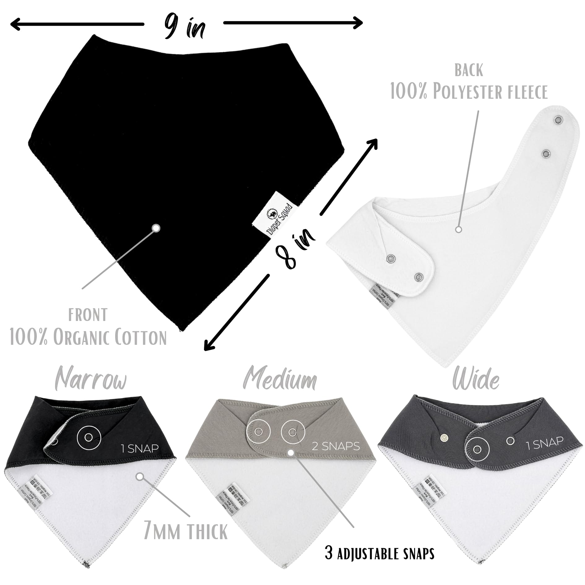 - Q: Are the bibs adjustable for different sizes? A: Yes, these bibs feature adjustable nickel-free snaps that provide three size options to fit your baby as they grow.