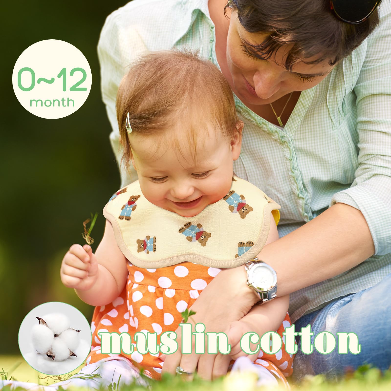 - Q: What materials are the EllieHouse Baby Bibs made from? A: The EllieHouse Baby Bibs are made from 100% Muslin cotton, featuring a waterproof layer for added protection against leaks.
