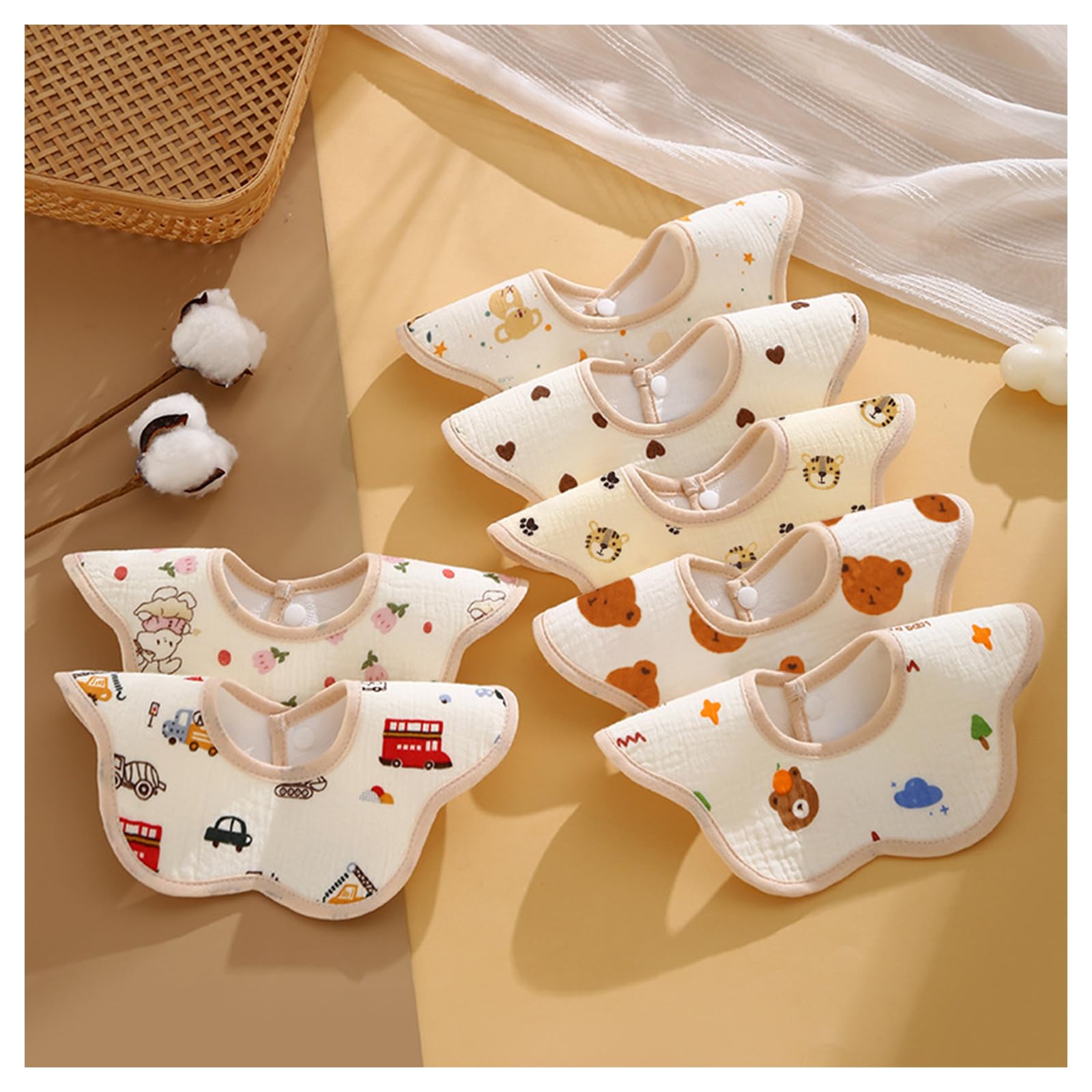 - Q: How many bibs are included in one set? A: Each set includes 10 baby bibs, each with a unique and stylish pattern suitable for both boys and girls.