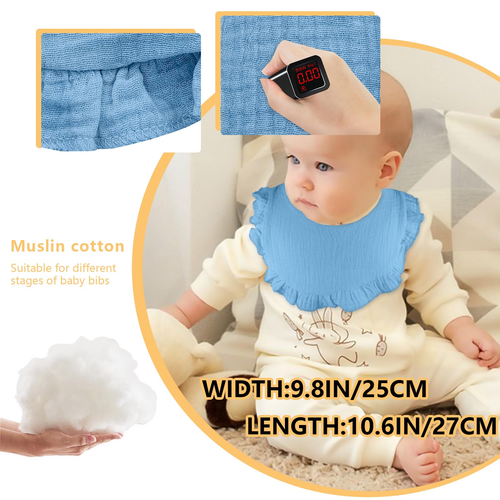 - Q: What is the closure style of these bibs? A: Each baby bib features a secure button closure with two adjustable buttons, ensuring an easy fit for babies of all ages.