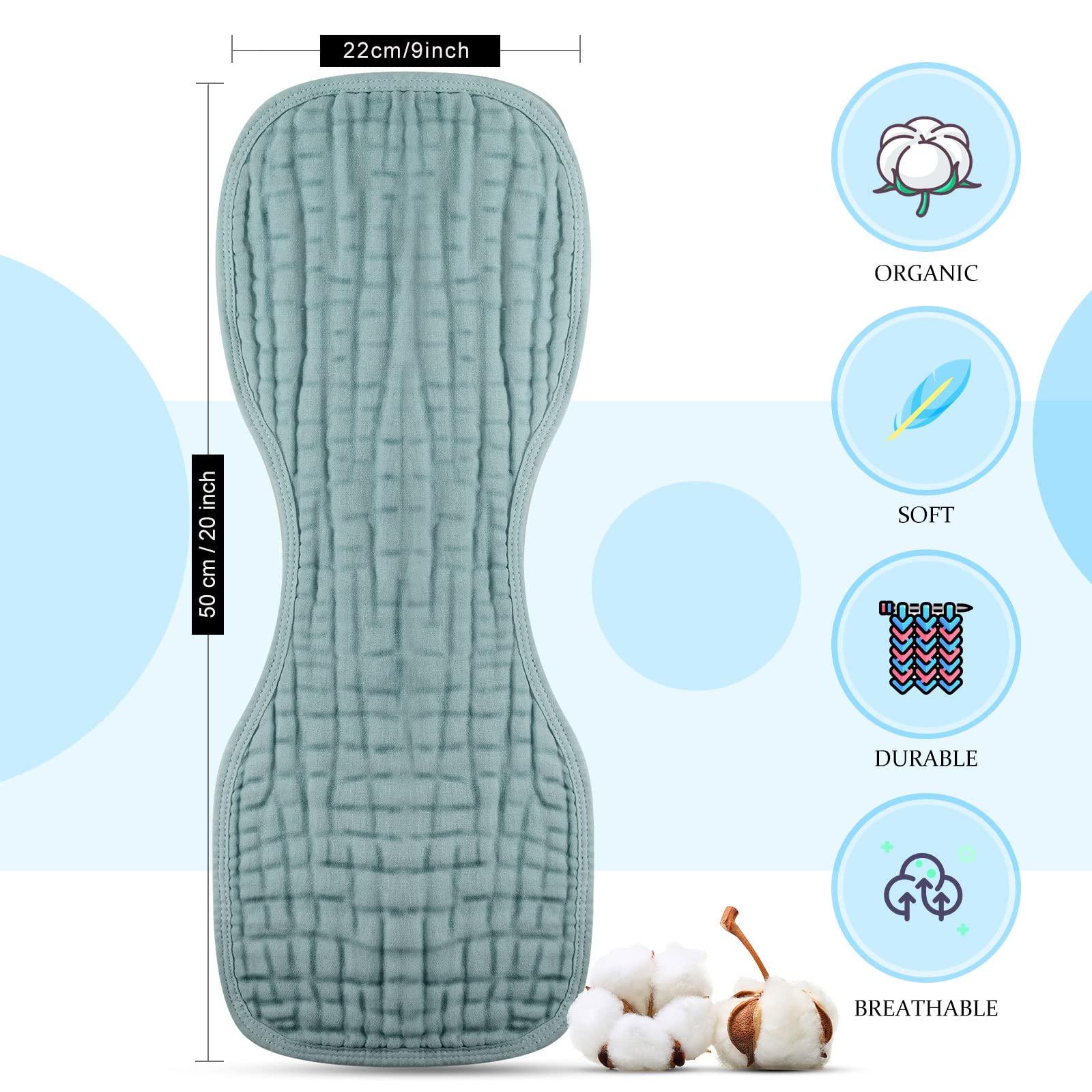 - Q: What material are the burp cloths made from? A: The burp cloths are made from soft muslin material, which is comfortable and breathable for your baby's delicate skin.