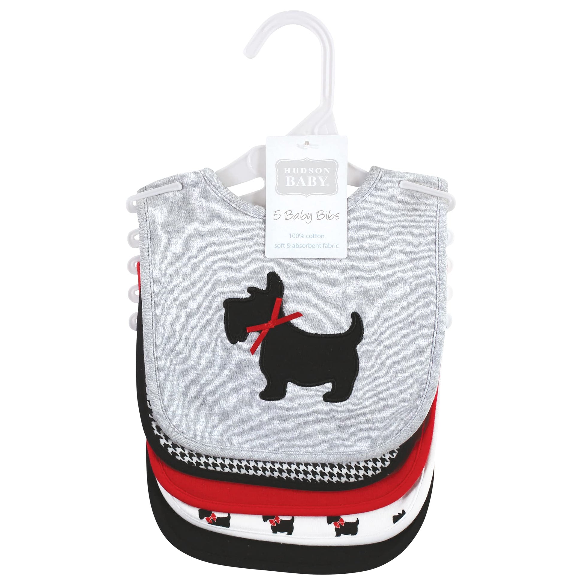 - Q: Do these bibs have any special features? A: The Hudson Baby bibs are designed with a fun and playful Scottie dog print, making them both functional and stylish for your baby.
