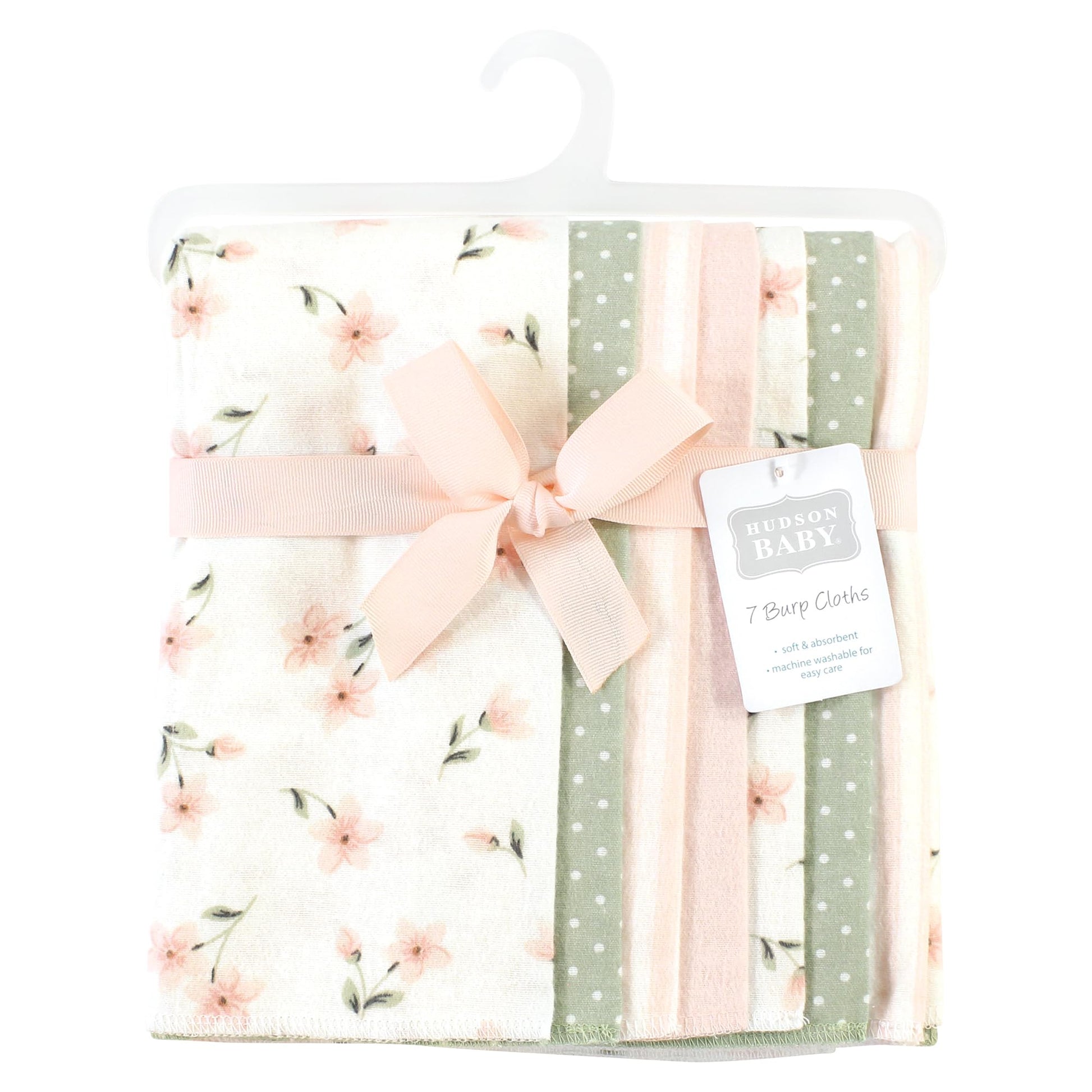 - Q: What is the design of the burp cloths? A: The burp cloths feature a pink dainty floral design, adding a cute touch to baby essentials.
