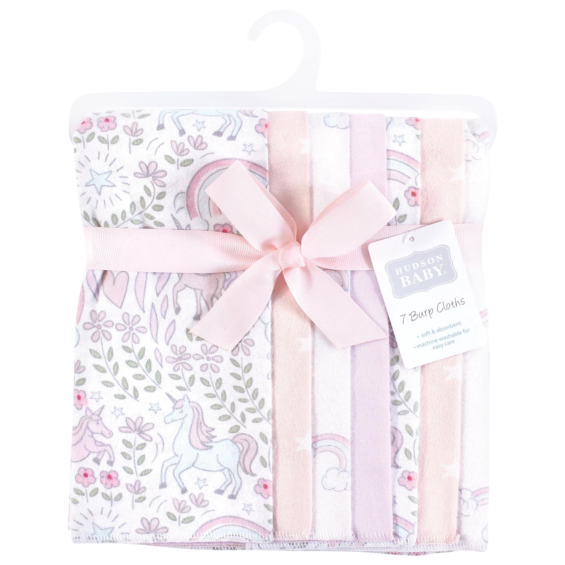 - Q: Do the burp cloths come in different designs? A: Yes, the Hudson Baby Flannel Burp Cloths in this pack feature a Dreamy Unicorn design, and there may be other designs available.