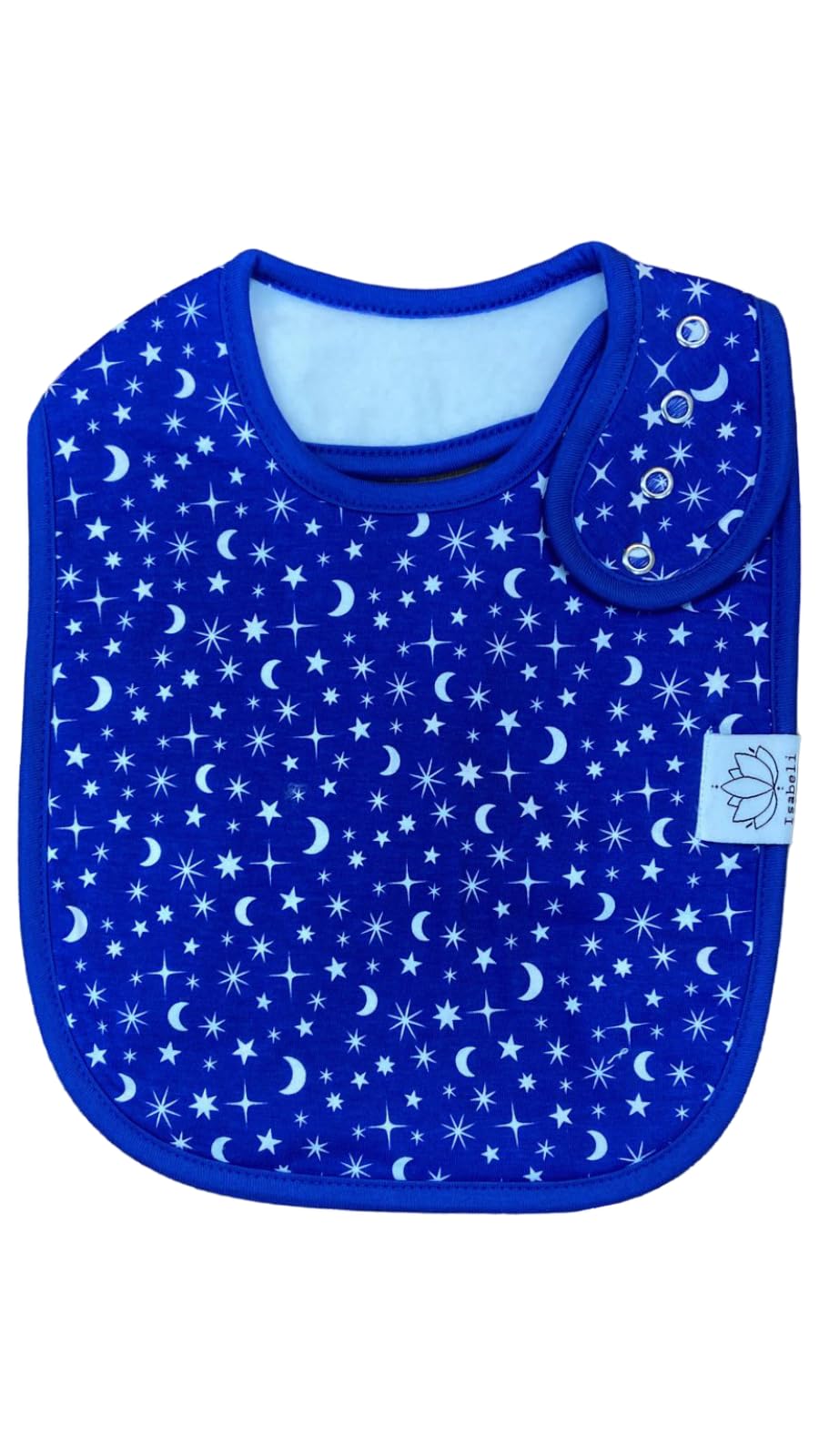 - Q: What materials are the Isabeli Organic Cotton Toddler Drool Bibs made from? A: The bibs are made from 100% organic cotton on the front and feature a soft fleece backing for added comfort.