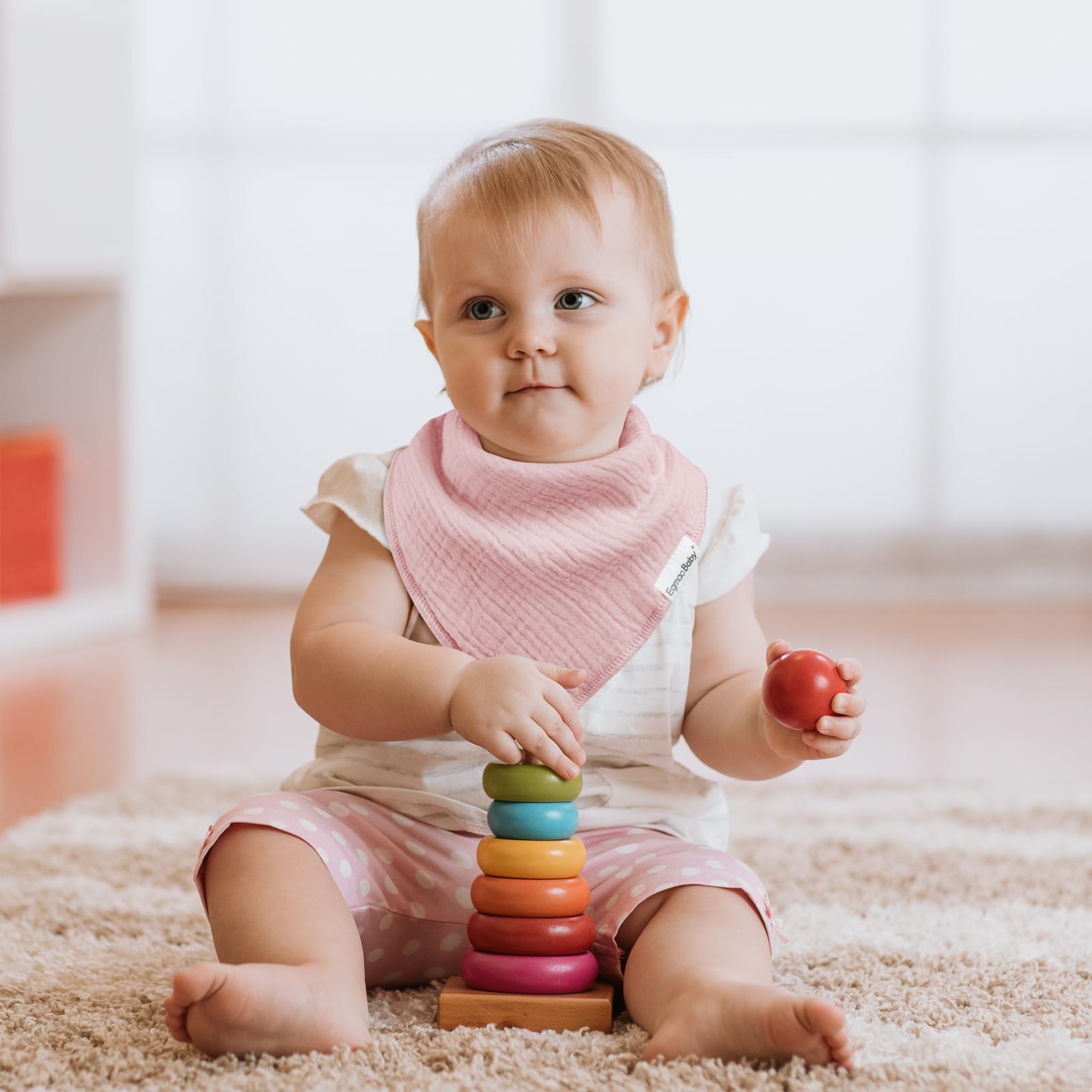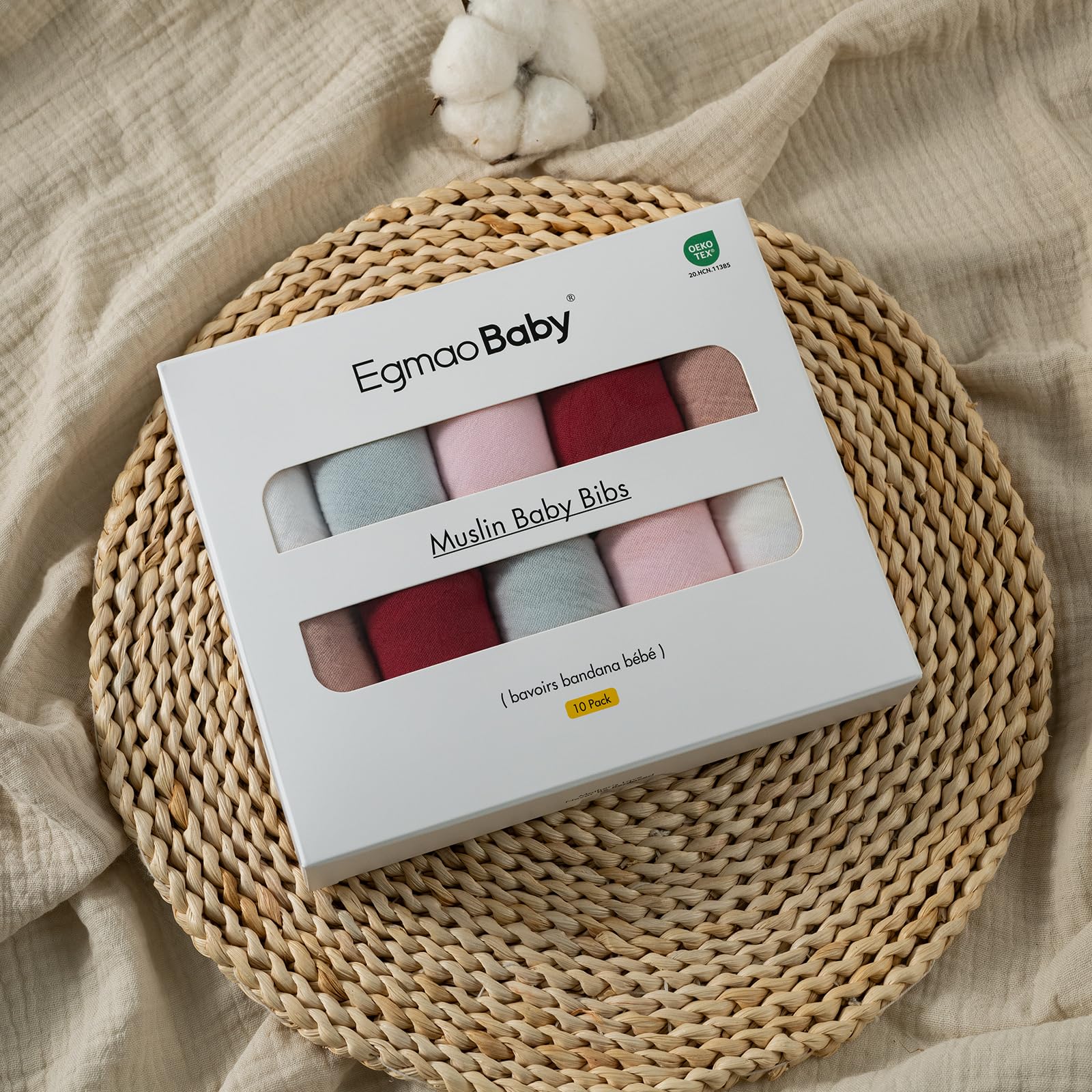 - Q: How many bibs come in a pack? A: Each pack contains 10 muslin baby bibs.