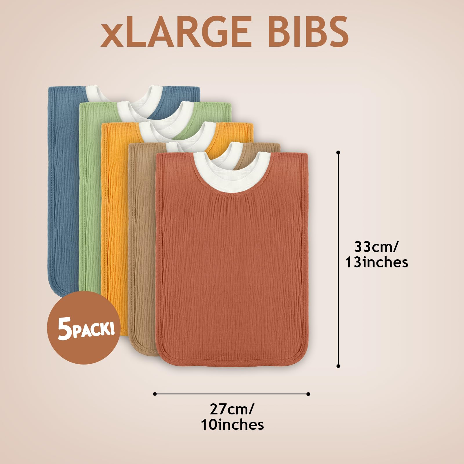 - Q: Are these bibs absorbent? A: Yes, the outer layer is crafted from absorbent muslin material that effectively catches stains and spills.
