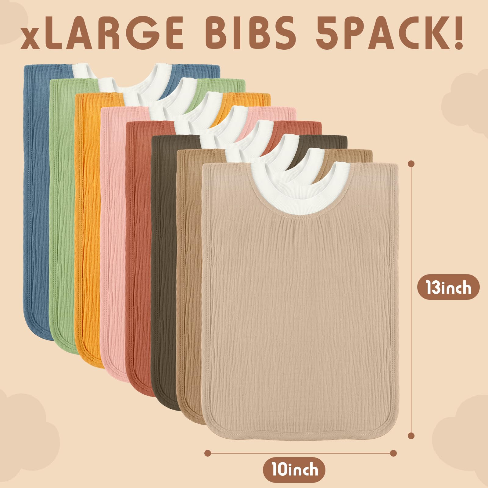 - Q: Are these bibs absorbent? A: Yes, the outer layer of the bibs is crafted from absorbent muslin material that effectively catches drool and food spills.