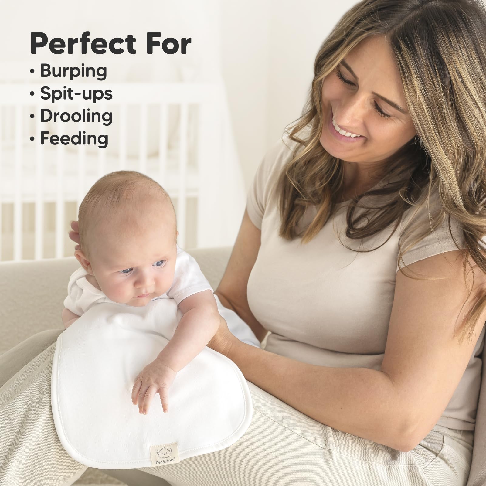 - Q: What is the design of the burp cloths? A: The burp cloths feature modern and stylish designs that can complement various nursery settings.