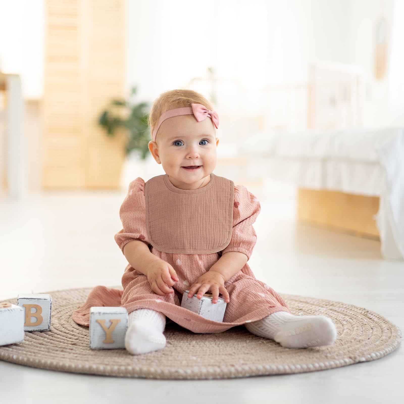 • Q: How absorbent are these bibs? A: The dual-layered design of the bibs effectively absorbs drool and spit-ups, helping to keep your baby and their clothes dry throughout the day.