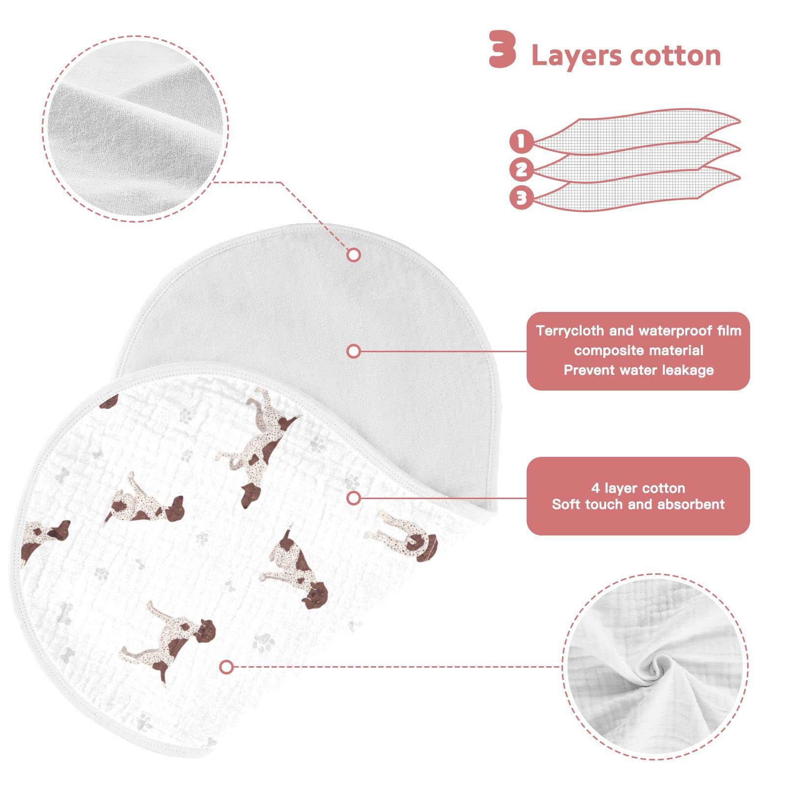 - Q: What is the design of the burp cloth? A: The burp cloth features a cute dog pattern of the German Shorthaired Pointer and has a one-sided full print.