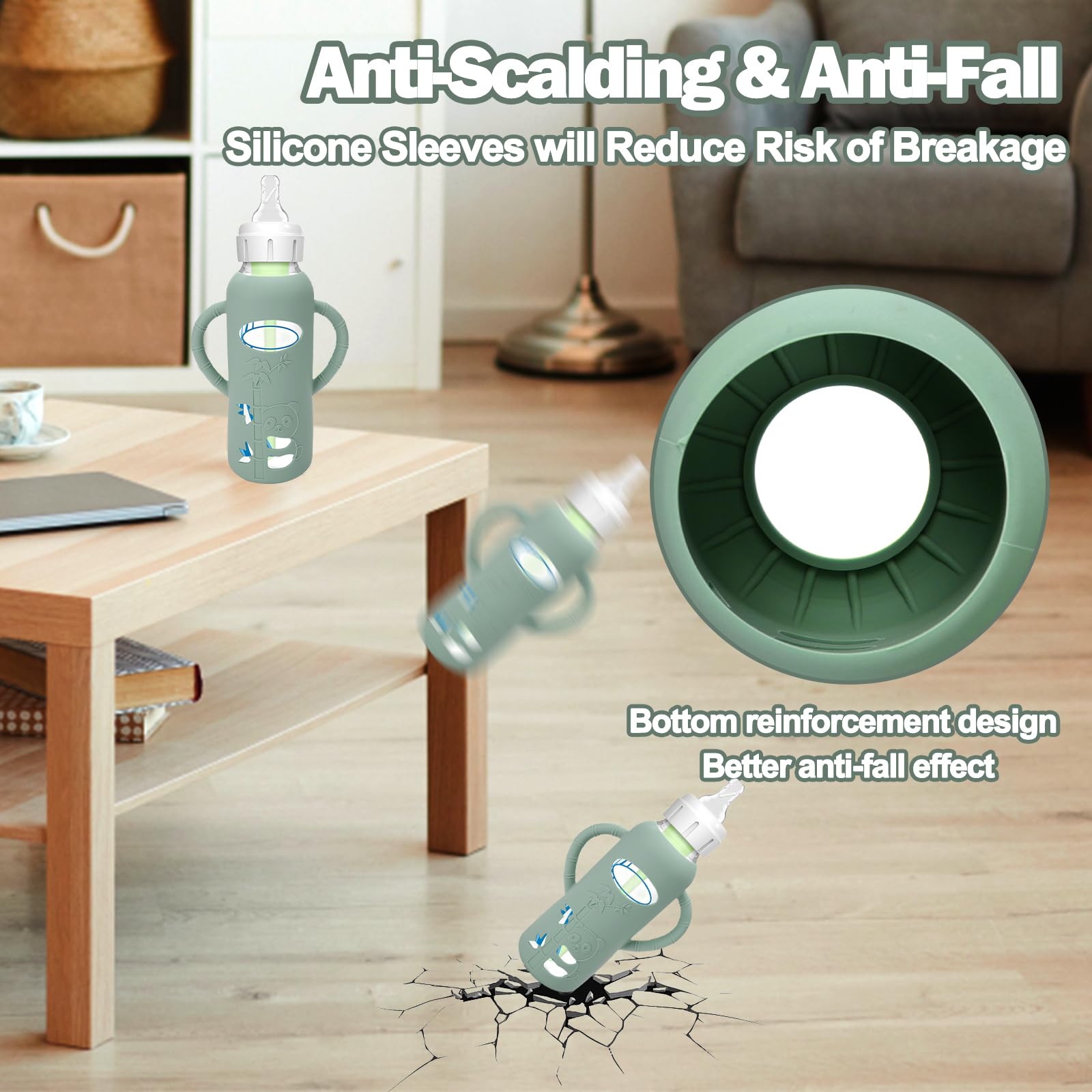 • Q: Do these sleeves provide protection against drops? A: Yes, the silicone sleeves are designed to protect against drops, bumps, and scratches, providing a sturdy layer of protection for glass baby bottles.