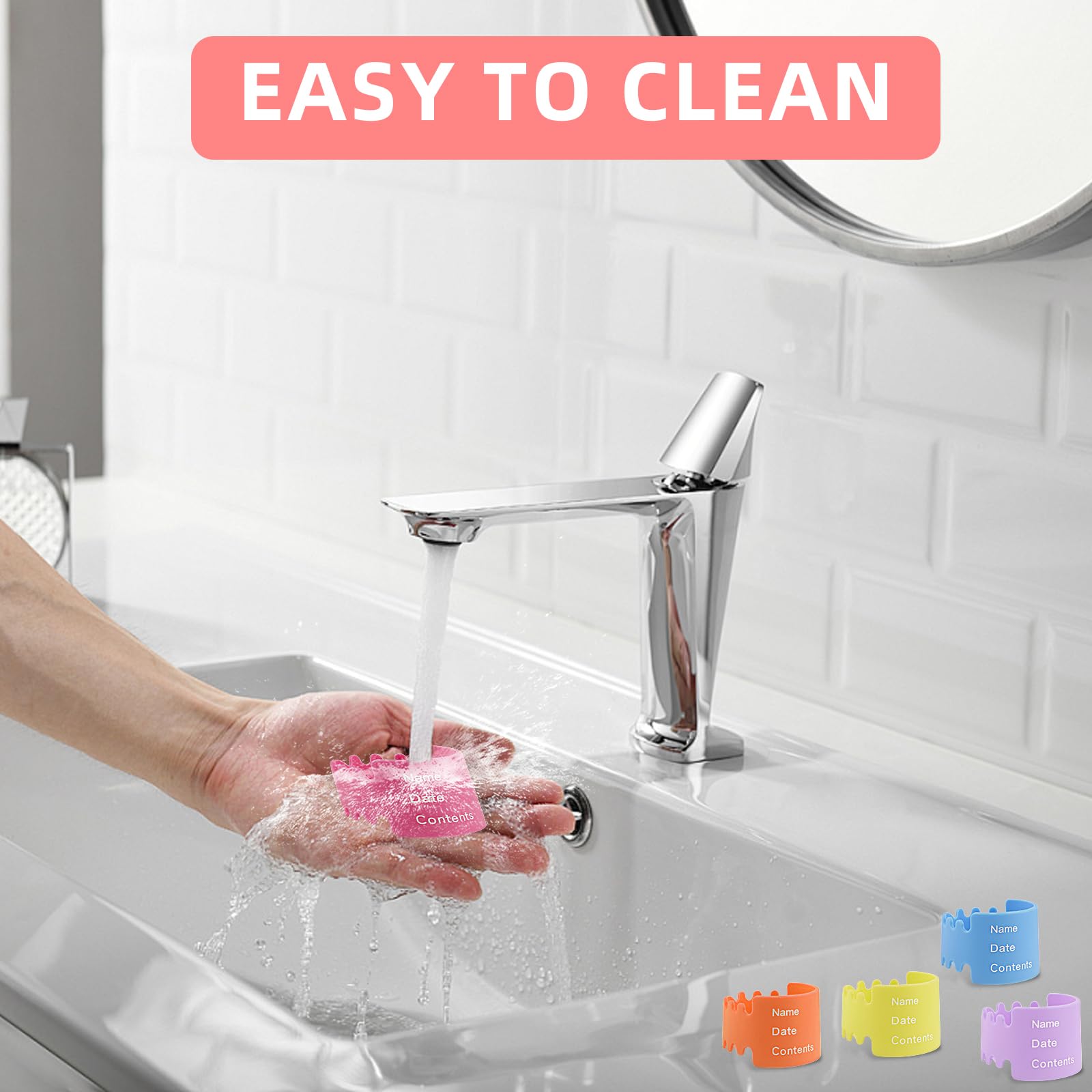 - Q: How can I clean the baby bottle labels? A: The silicone baby bottle labels can be easily cleaned. They are dishwasher safe, and you can also wash them by hand with mild soap and water.