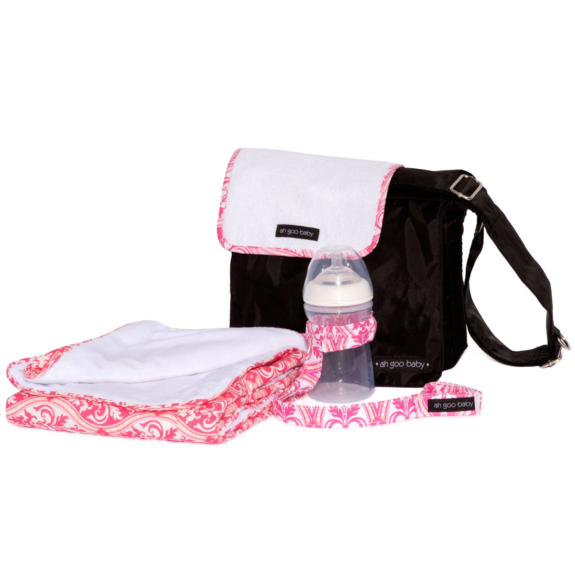 - Q: Does the Bottle Strap come in different patterns? A: Yes, the Bottle Strap comes in matching patterns that coordinate with other Ah Goo Baby products.