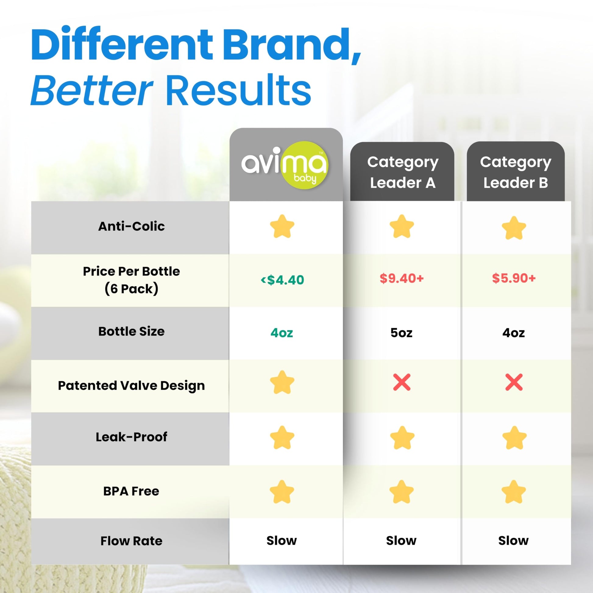 - Q: Do these bottles leak? A: The Avima Baby bottles are designed with a leak-proof system to prevent spills during feeding.
