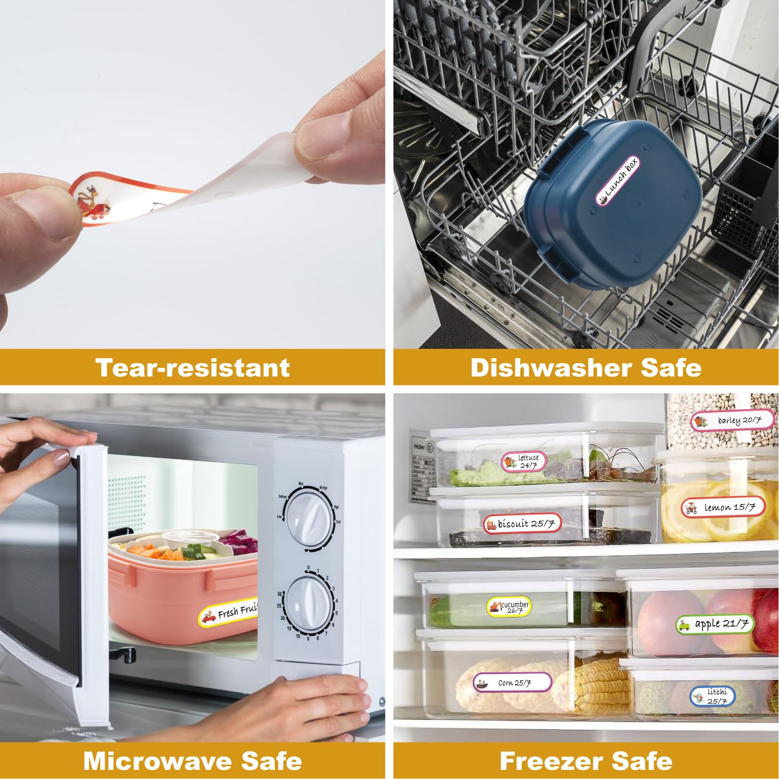 - Q: Are these labels waterproof? A: Yes, these labels are waterproof and can withstand daily soaking, washing, and sterilizing. They are designed to be dishwasher-safe, microwave-safe, and freezer-safe.