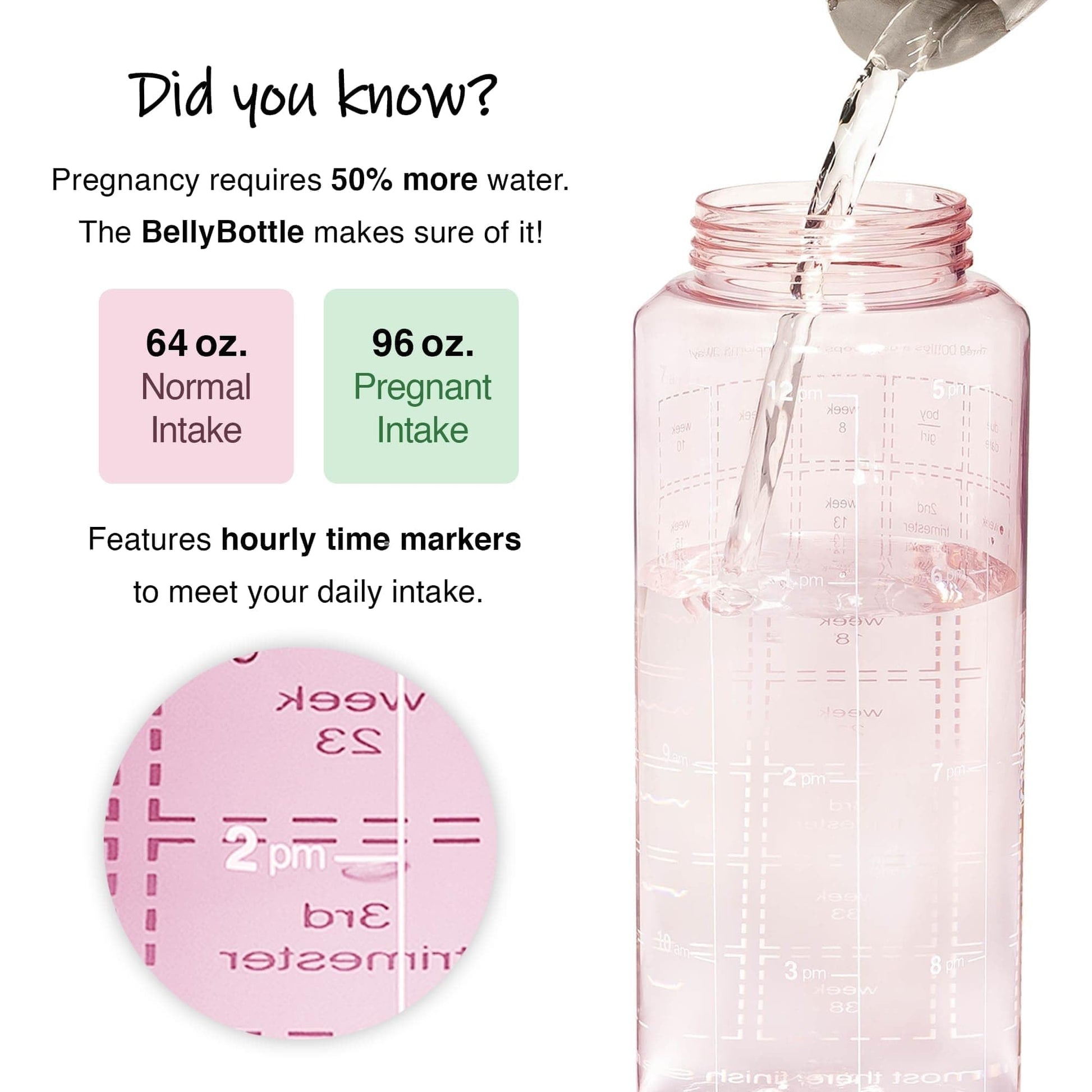 - Q: What features does the BellyBottle include for monitoring hydration? A: The BellyBottle includes a straw for easy sipping and comes with weekly milestone stickers to track hydration levels throughout pregnancy.