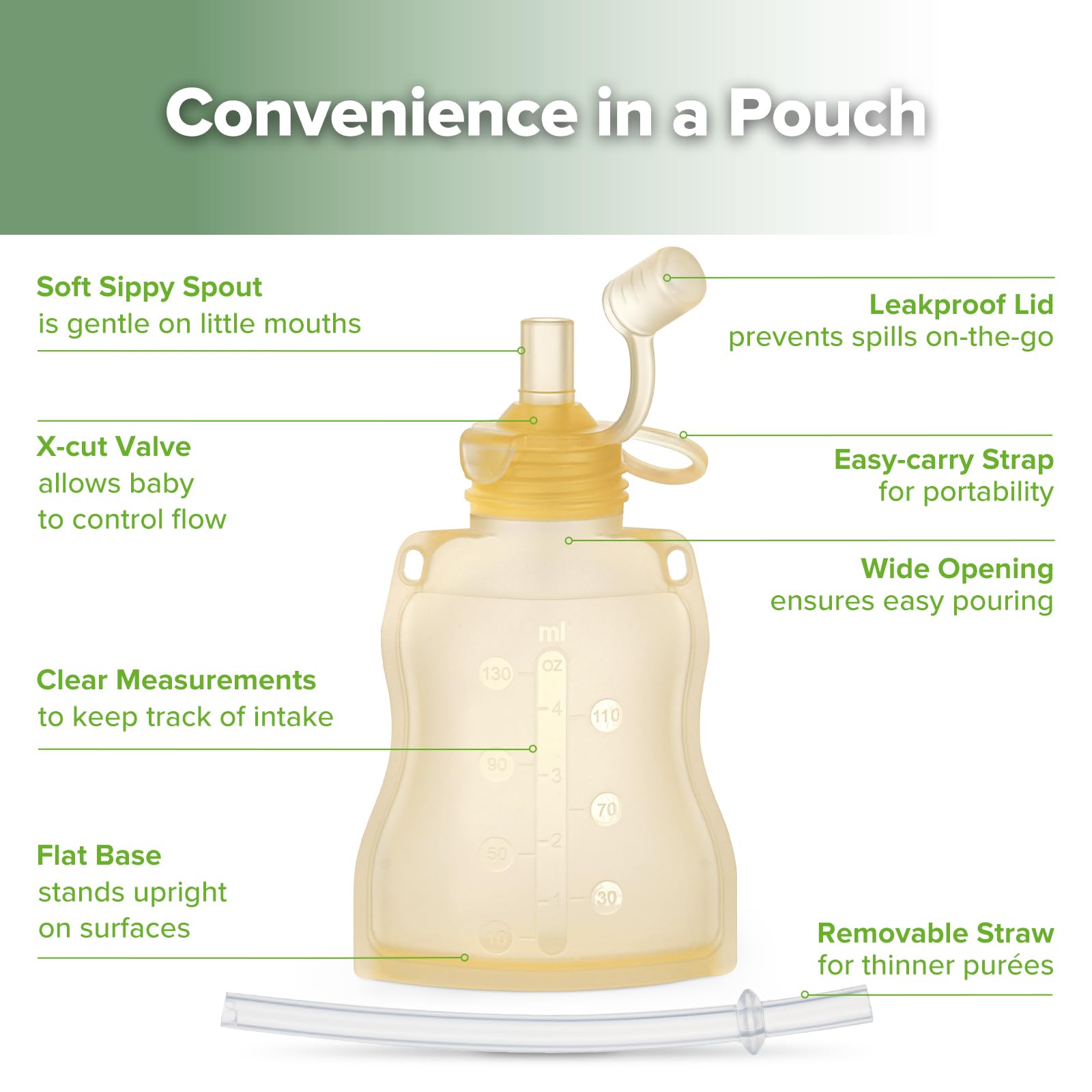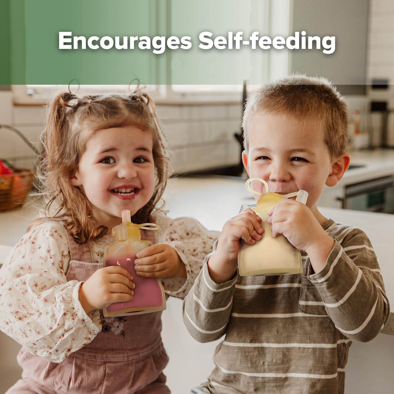 - Q: How do these pouches support self-feeding for toddlers? A: The soft silicone spout features a cross-cut valve that allows toddlers to control the flow of food, matching their abilities and helping to reduce mess during feeding.