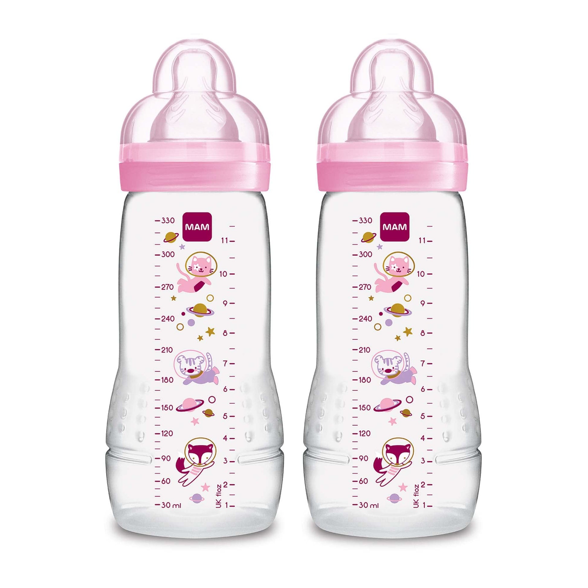 - Q: What is the capacity of the MAM Easy Active Baby Bottles? A: The MAM Easy Active Baby Bottles have a capacity of 11 ounces or 325 milliliters.