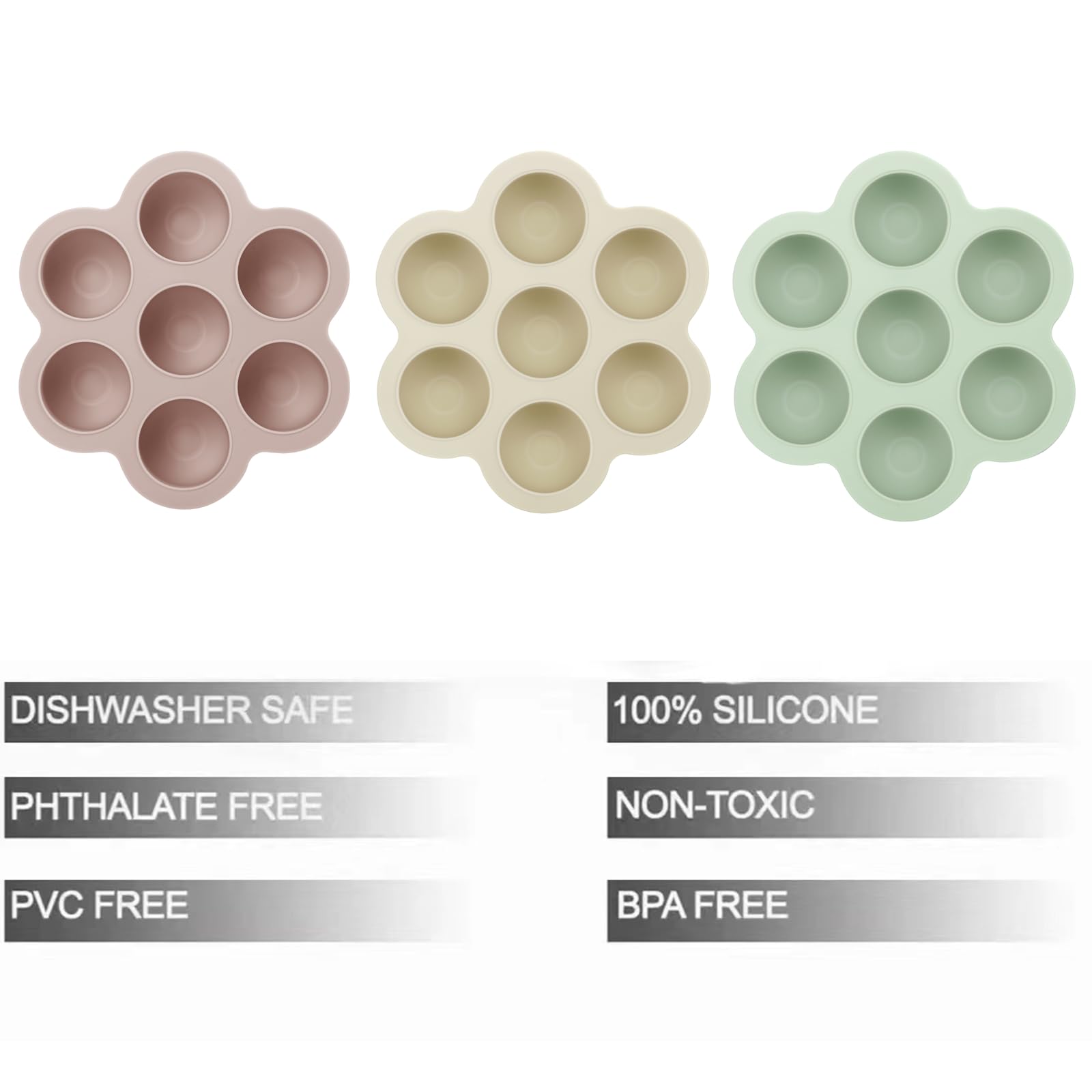 - Q: What colors are available for this freezer tray? A: The PandaEar Baby Food Freezer Tray is available in a set of three colors: Pink, Green, and Linen.