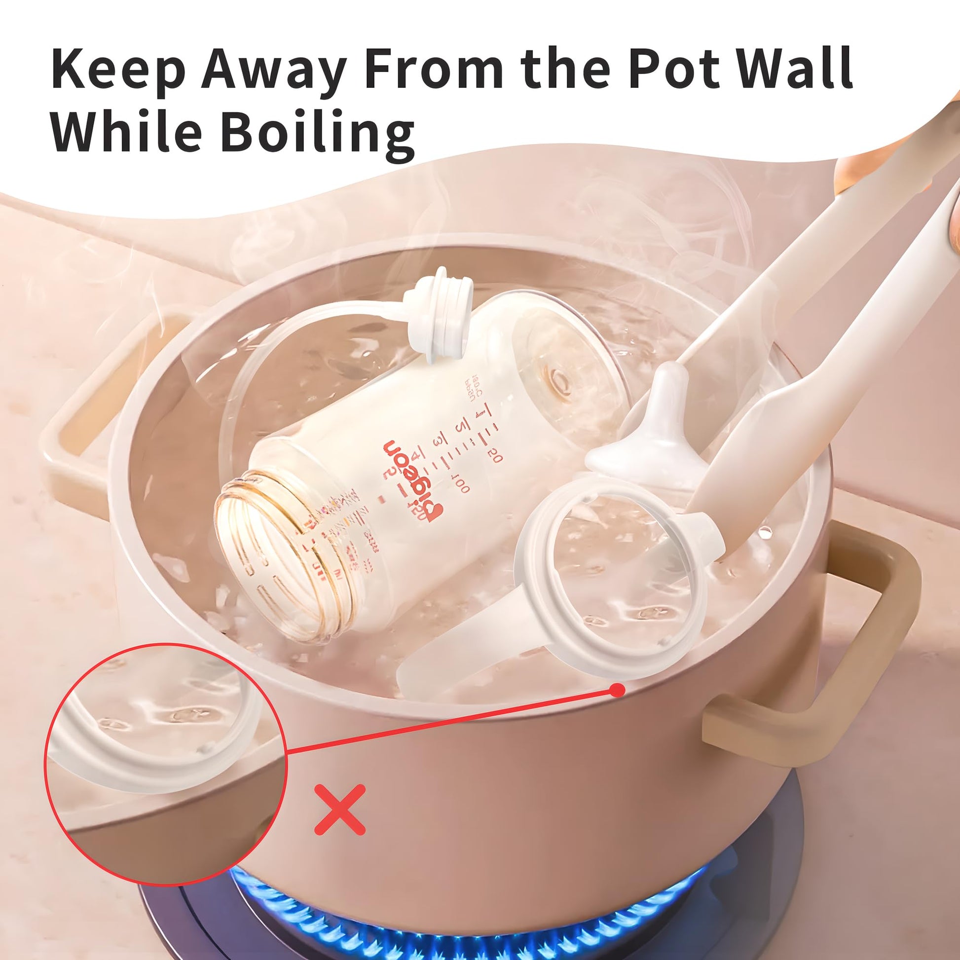 • Q: Can I sterilize the Pigeon Baby Bottle Handles? A: Yes, these handles are made from high-quality, heat-resistant material that can be safely sterilized at temperatures up to 248 degrees Fahrenheit (120 degrees Celsius).