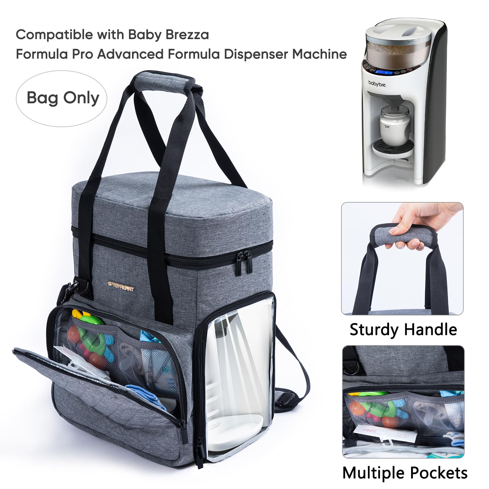 - Q: What is the carrying case compatible with? A: The carrying case is specifically designed to be compatible with the Baby Brezza Formula Pro Advanced Formula Dispenser Machine.