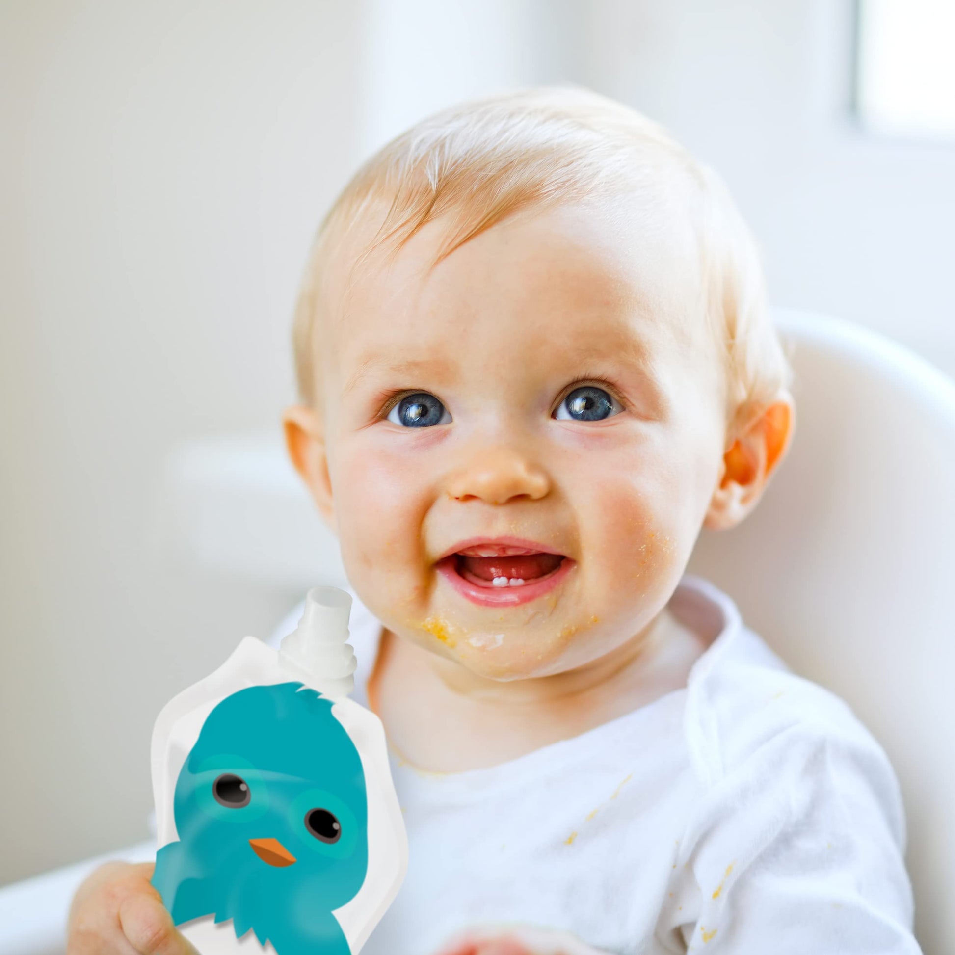 The perfect selection of adorably designed, reusable food pouches, in two handy sizes For baby food, toddler snacks and kids of all ages Package includes one small lion, one small bird, one large walrus, one large panda, one large monkey, and one large penguin Sure to make even picky eaters smile capacity: small - 34 fl oz (100mL) large - 5 fl oz (146mL) Quantity: 2 small pouches and 4 large pouches