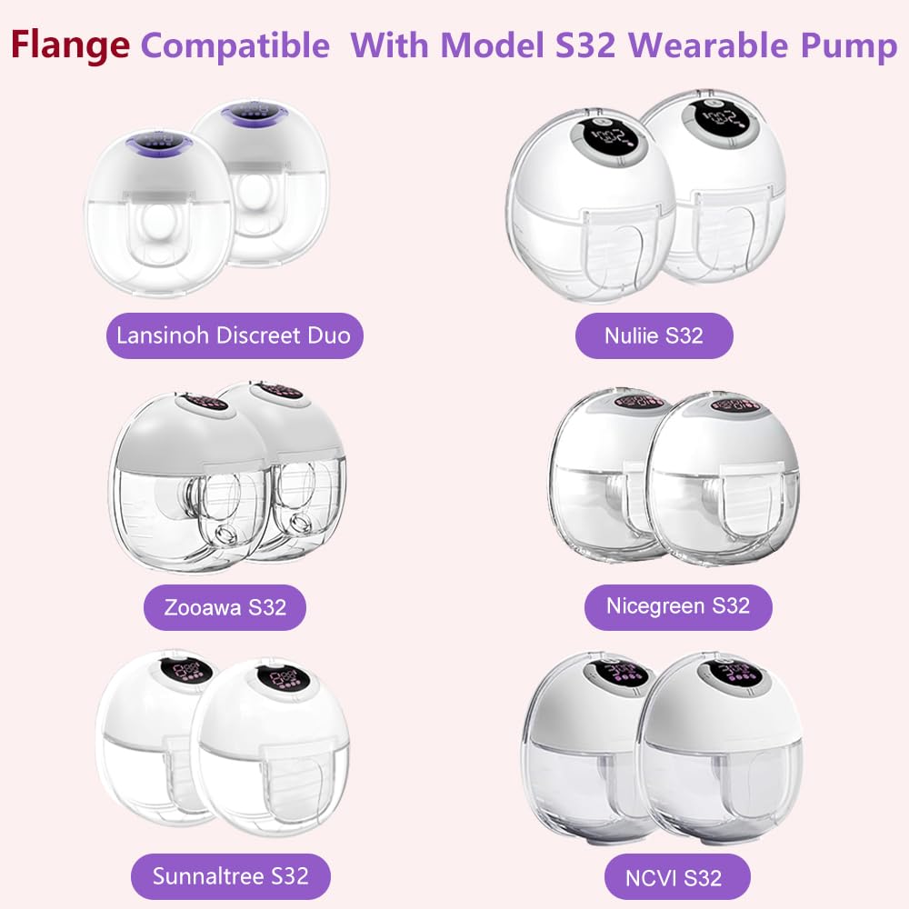- Q: Is the S32 Breast Pump Flange compatible with other brands? A: Yes, the S32 Breast Pump Flange is compatible with several brands including Lansinoh Discreet Duo, NCVI, NICEGREEN, Nuliie, Zooawa, and Sunnaltree wearable breast pumps.