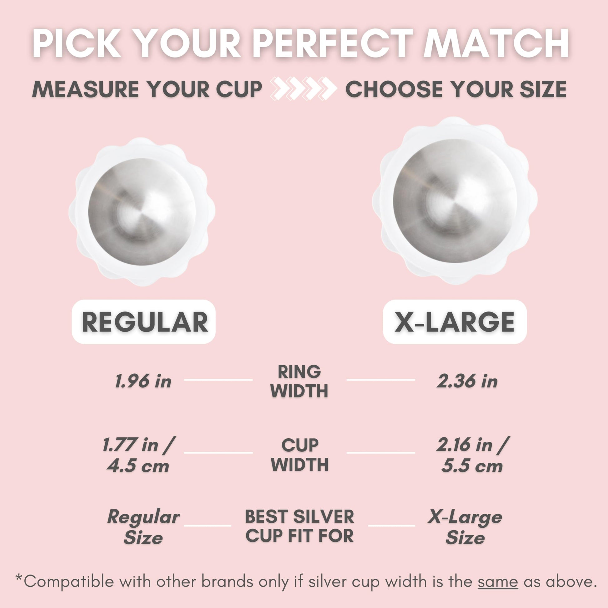 - Q: What is the size of the X-Large Bloom Bands? A: The X-Large Bloom Bands are designed for nursing cups with a width of 2.16 inches or 5.5 centimeters, providing a tailored fit.