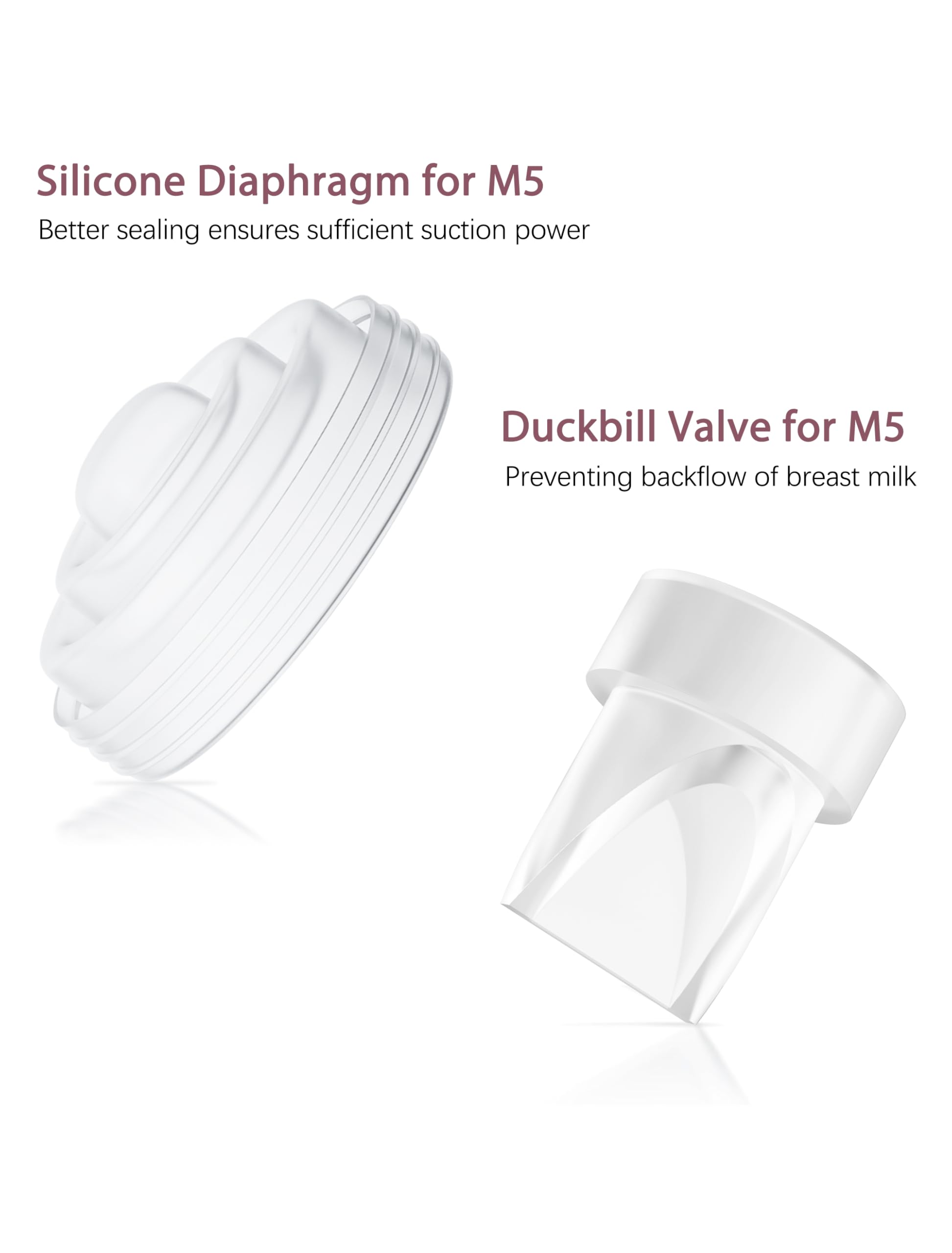 • Q: Will these parts improve the suction of my breast pump? A: Yes, the duckbill valves are designed to provide a snug fit and strong suction, improving the overall performance of your Momcozy M5 breast pump.