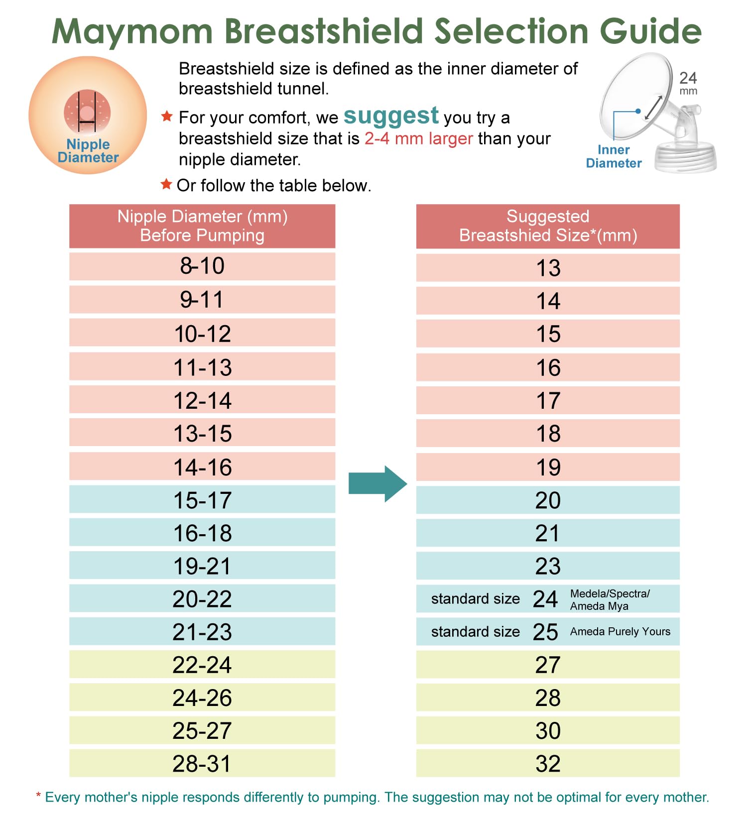 • Q: Is the Maymom flange adjustable for different breast sizes? A: The Maymom flange itself is not adjustable; however, it is available in different sizes to accommodate various breast sizes.