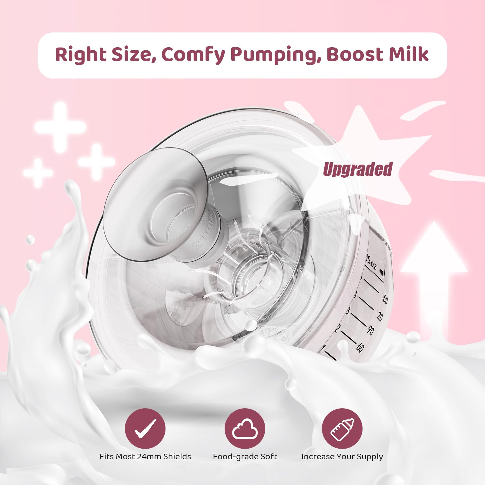- Q: Do the flange inserts help reduce discomfort while pumping? A: Yes, the soft silicone construction of the flange inserts provides a gentle and cushioned surface, which can help reduce discomfort and promote better milk flow during pumping.
