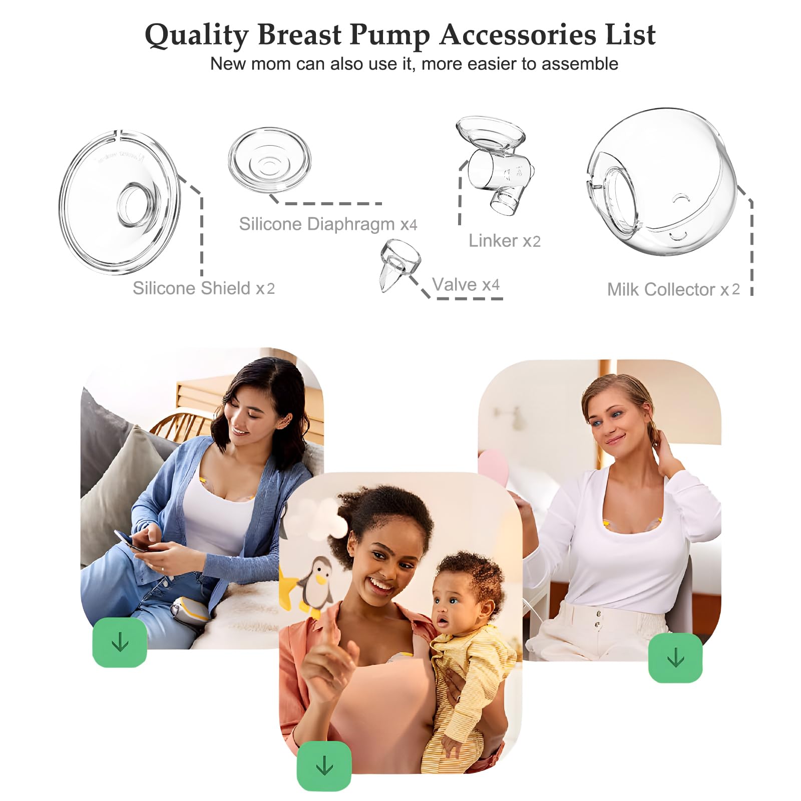 • Q: Are the materials used in the breast pump parts safe for my baby? A: Yes, all breast pump replacement parts are made from food-grade silicone and are BPA-free, ensuring they meet safety standards for your baby's milk.