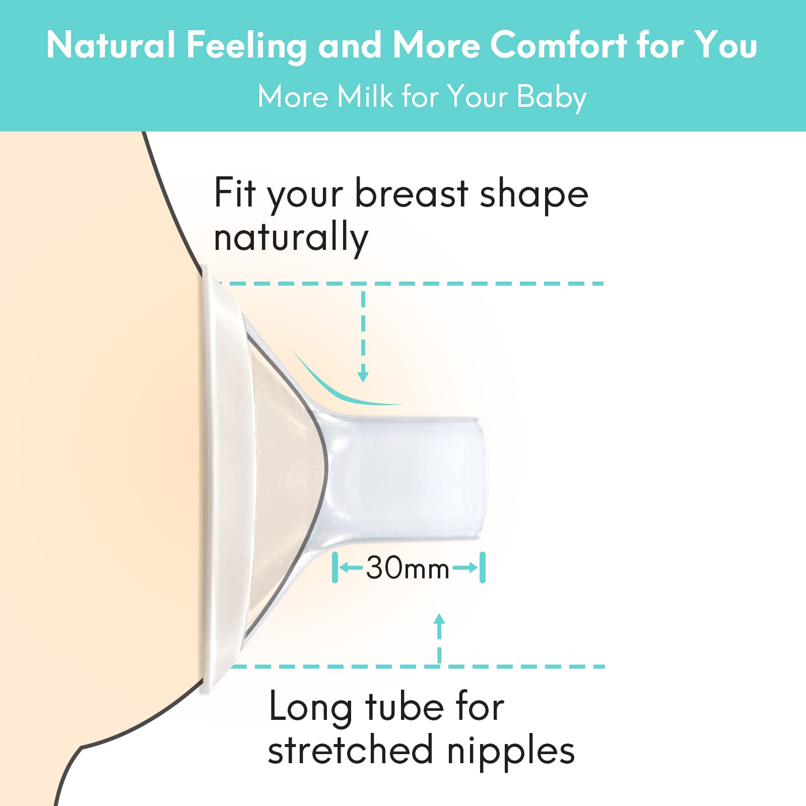 • Q: Can these breast shields help with comfort during pumping? A: Yes, the MompMuir ComfortFit flanges feature a soft rim that is gentle on the skin, aiming to enhance comfort during pumping sessions and help maintain a positive experience.