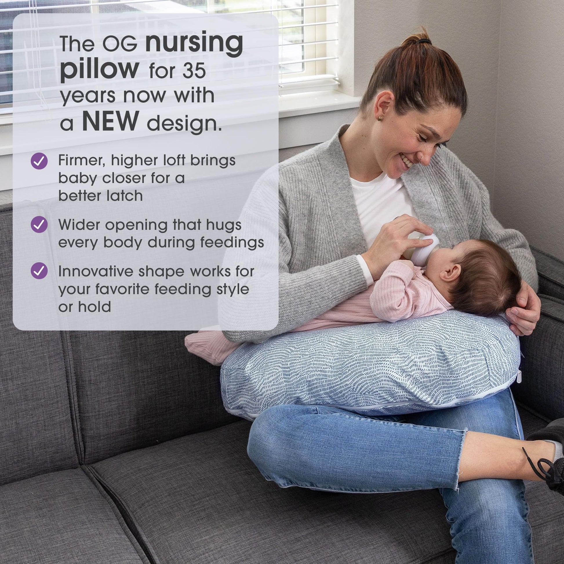 - Q: How long has the Boppy brand been making nursing pillows? A: Boppy has been making nursing pillows since 1989, with over 35 years of experience providing products that connect babies and moms.