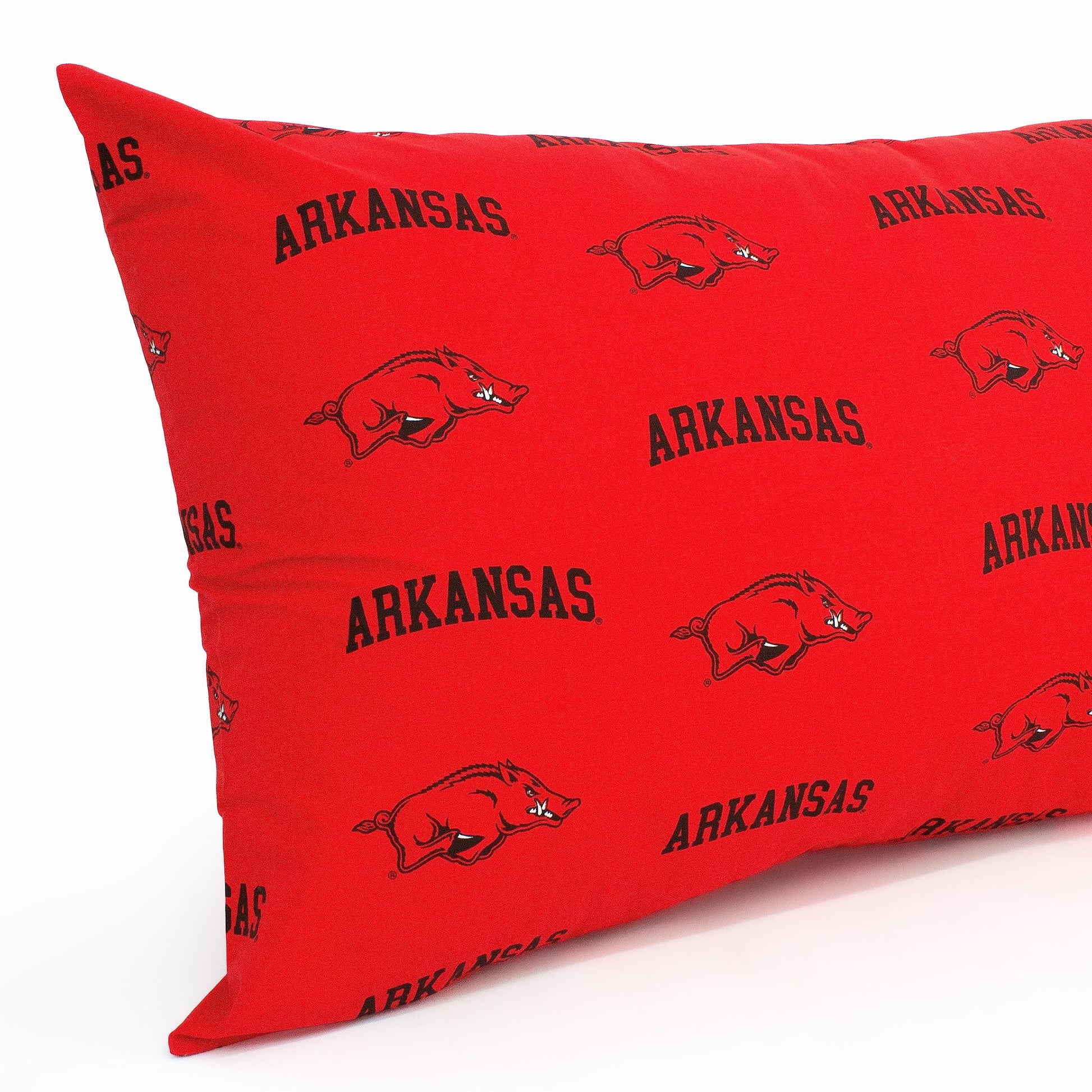 - Q: What size is the Arkansas Razorbacks body pillowcase? A: The Arkansas Razorbacks body pillowcase measures 20 inches by 60 inches, designed to fit most common body pillows.