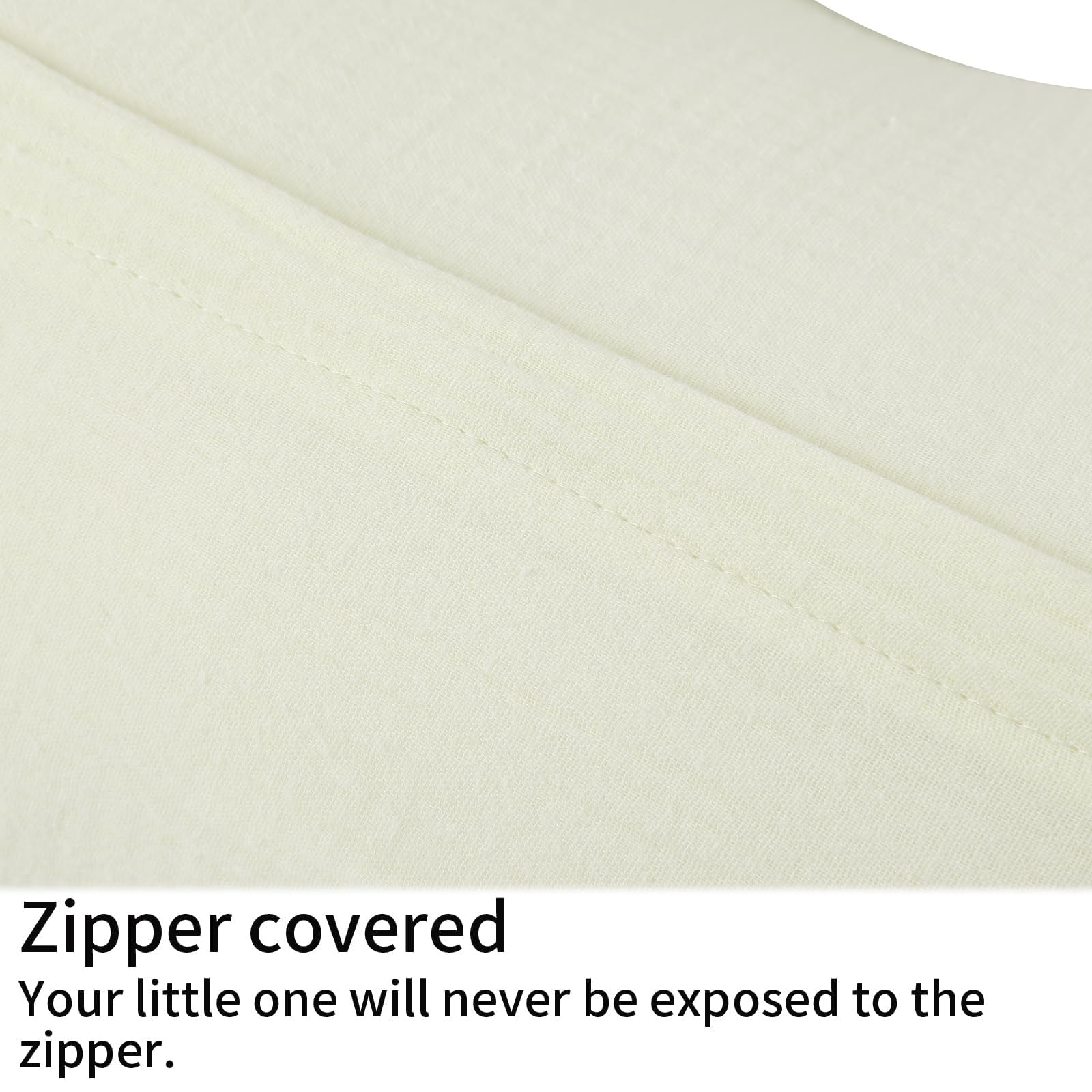 - Q: Does the nursing pillow cover have a zipper? A: Yes, the nursing pillow cover features a hidden zipper closure on the backside, which is covered with fabric for safety.