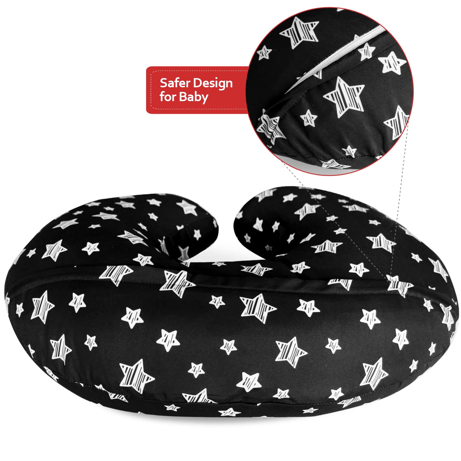 Nursing Pillow Cover Black With Star Print For Baby Boys, Snug Fits Boppy Nursing Pillows, Soft Breastfeeding Nursing Pillow Sli