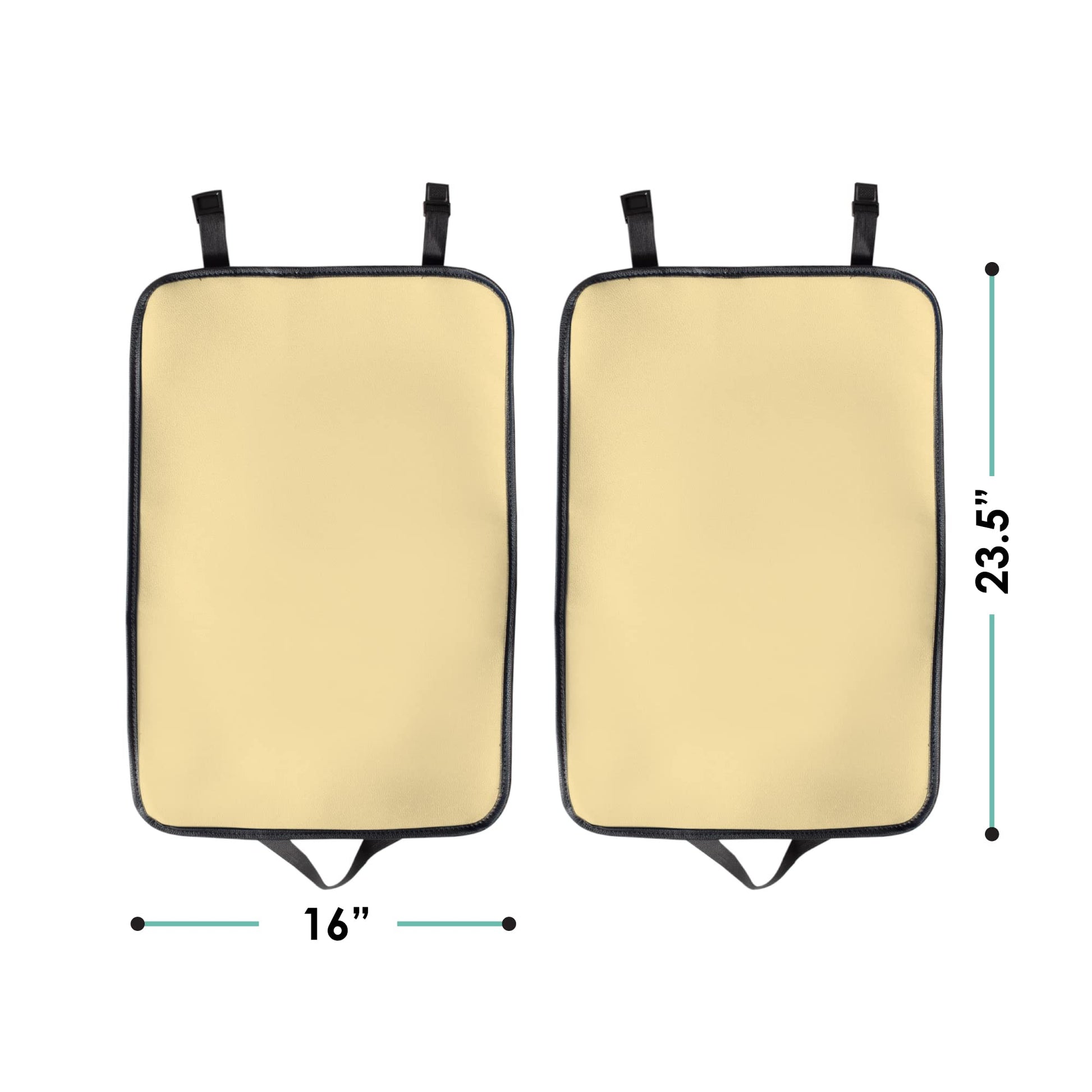 - Q: What are the dimensions of the seat back kick protectors? A: The dimensions of each seat back kick protector are approximately 26 inches in height and 18 inches in width.