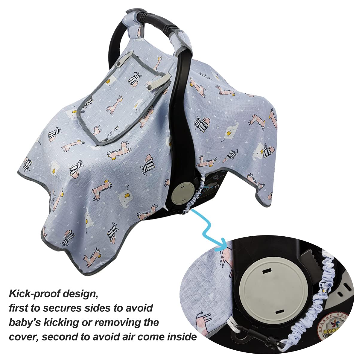 - Q: What makes this car seat cover kick-proof? A: The kick-proof design includes hooks that secure the cover in place, preventing it from shifting or coming loose when your baby moves.